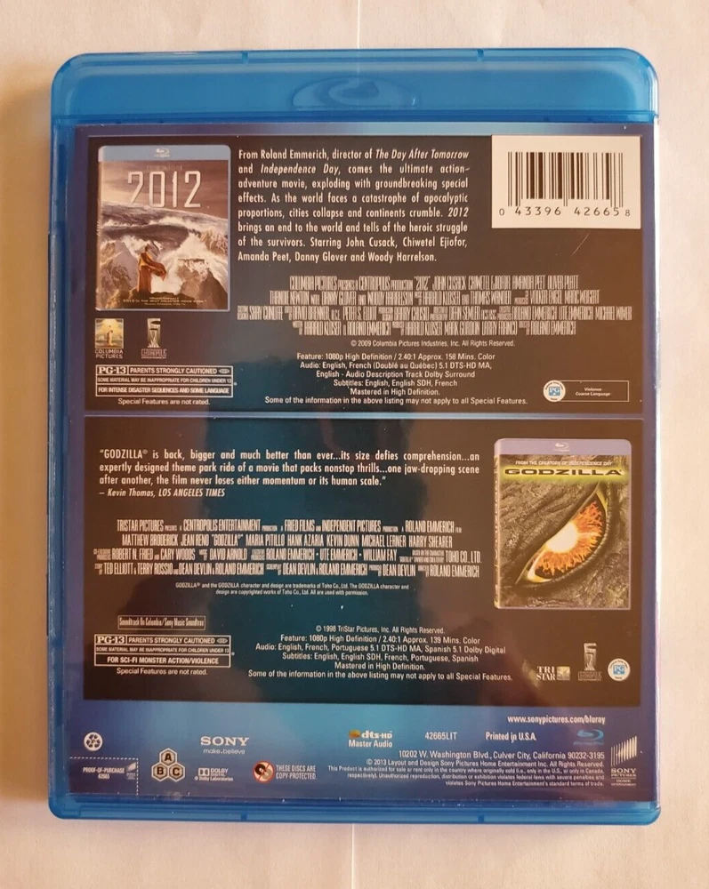 "2012 & Godzilla" Blu-ray Double Feature Excellent Condition