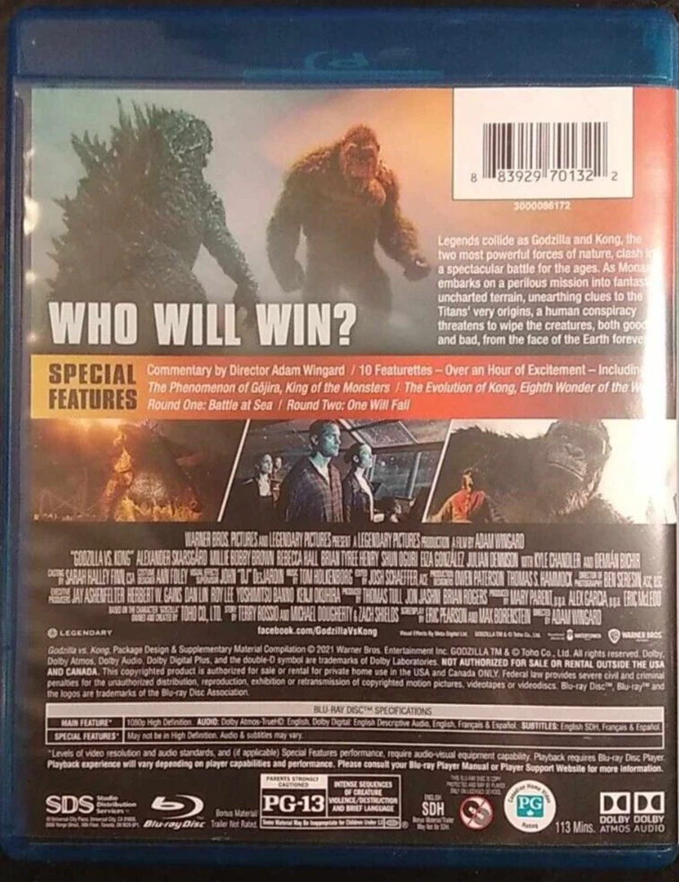 Experience the epic battle between the two iconic monsters in "Godzilla Vs Kong" on Blu-ray. This movie promises to deliver an action-packed adventure that will keep you at the edge of your seat. This Blu-ray disc features high-definition video quality and English language audio, as well as special features like commentary. The disc comes in a standard jewel case and is region-free, making it compatible with Blu-ray players worldwide. Add this movie to your collection and relive the thrilling showdown between Godzilla and Kong. Bid w/ Confidence Be sure to check out my EBAY store! Thank you, Ruckscards