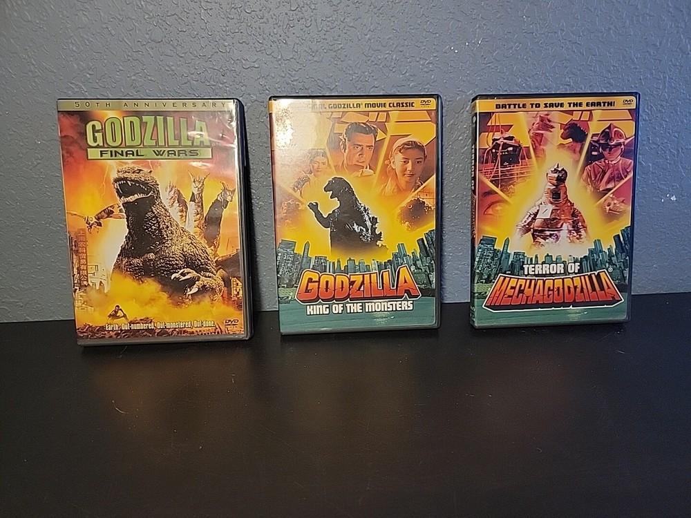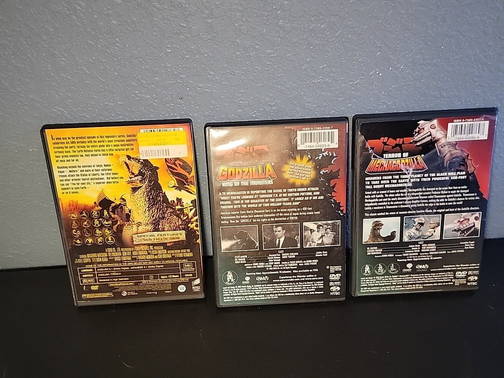 Three original Godzilla movies in DVD format. Enjoy these classics. Movies are used. Disks a r e in good shape. May have minor scratches that do no effect play. Cases in various conditions. See pictur...