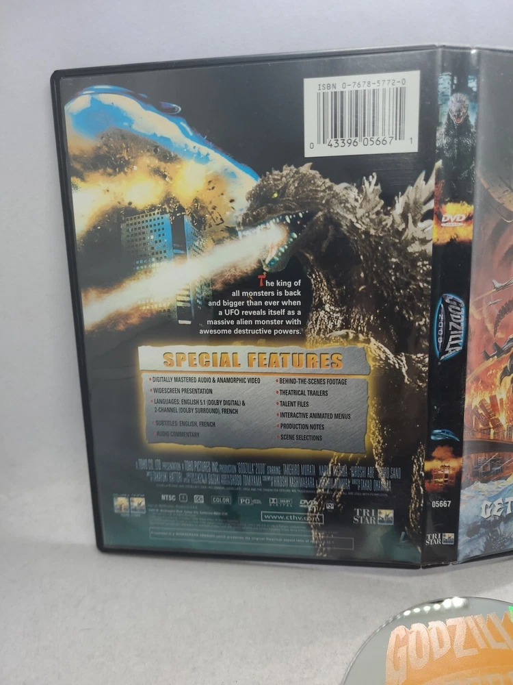 "Godzilla: King of the Monsters" and the 2000 classic. Fans of science fiction and horror alike will enjoy the action and adventure. The movie titles are prominently displayed on the packaging, making it easy for collectors to display. This is a must-have addition to any movie collection, and it is sure to provide hours of entertainment. Kindly assess the item's condition in the provided photo, as the depiction accurately represents what you will receive. Upon receiving payment, the item will be promptly shipped.