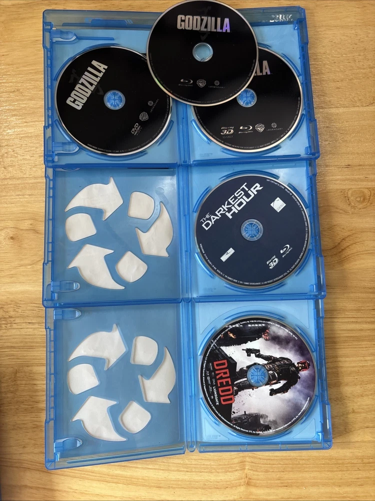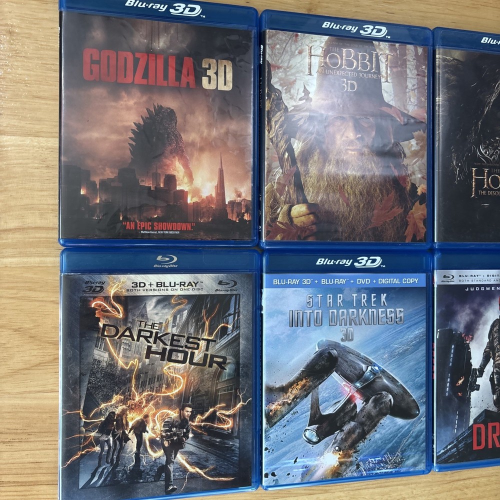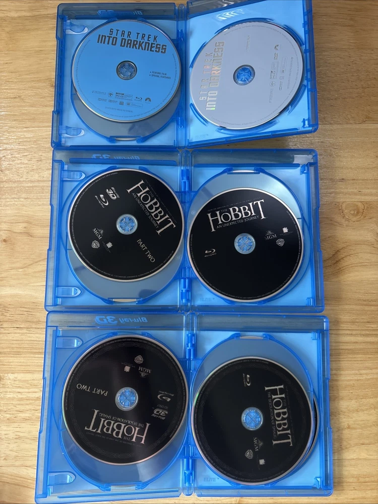 You choose shipping method. Shipped with USPS Media Mail (slow) or USPS Ground Advantage (fast). Does not include digital copy. Includes: The Darkest Hour Dredd Godzilla - 3D, Blu-ray, DVD Star Trek Into Darkness - 3D, Blu-ray, DVD The Hobbit an Unexpected Journey - 3D, Blu-ray- missing DVD The Hobbit the Desolation of Smaug - 3D, Blu-ray, DVD Used item. Cases are in good to very good condition. May have imperfections. Please see photos for exact item and what it includes. Discs are in very good to great condition. They may have light smudges or scratches but doesn’t affect playback. See photos. We accept returns on this item. Items must be returned in original condition, unopened with tags if applicable, within 30 days of purchase. Buyer will pay for the cost of shipping the item back for refund. Contact with any questions. Thank you!