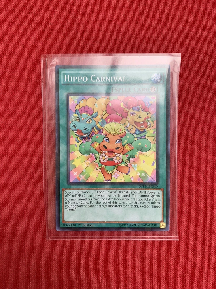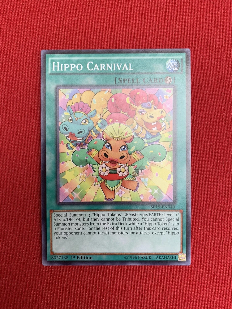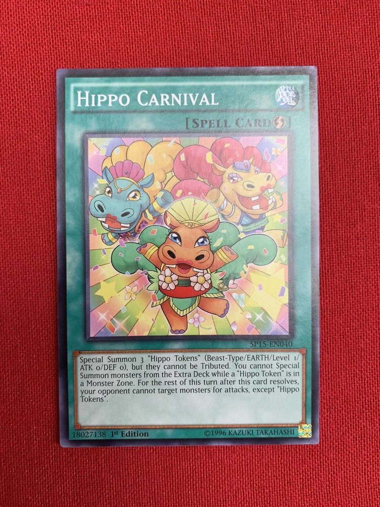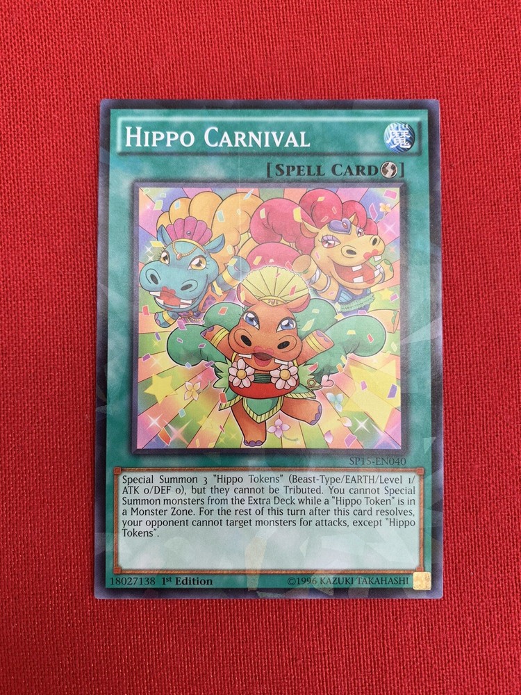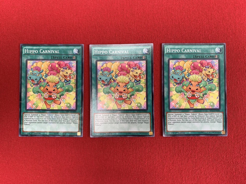 3x Hippo Carnival (SP15-EN040) Yu-Gi-Oh! Spell Cards - 1st Editions. The three cards included in this lot are Hippo Carnival (SP15-EN040) - Quick-Play Spell Card - 1st Edition - Shatterfoil - Very Good Condition Hippo Carnival (SP15-EN040) - Quick-Play Spell Card - 1st Edition - Very Good Condition Hippo Carnival (SP15-EN040) - Quick-Play Spell Card - 1st Edition - Very Good Condition Please see the images. The items will be dispatched with Royal Mail 2nd Class Letter.