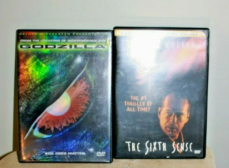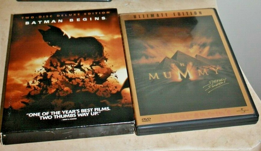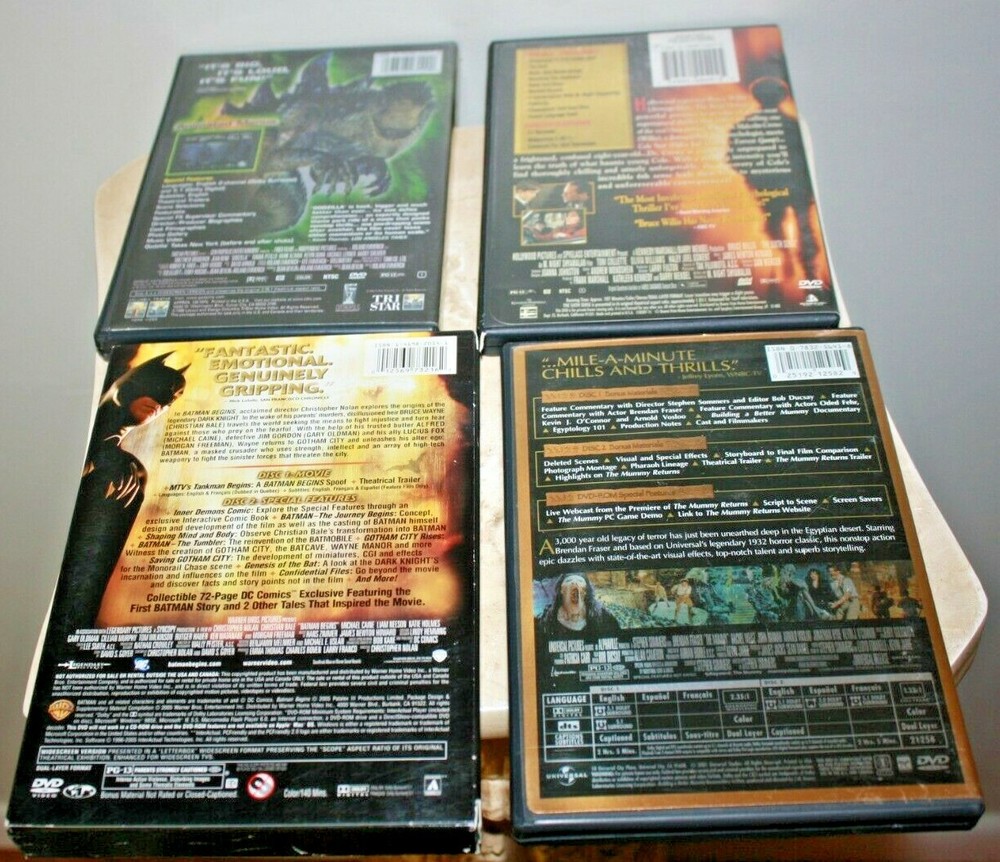 4 Great Movies DVD Thriller/Suspense/Horror All in nice condition with booklets Please see photos. Includes: *Batman Begins Two Disc Deluxe Edition w/ collectible 72 page comic *The Sixth Sense Collector Edition Series *The Mummy Ultimate Edition 2 disc w extras *Godzilla Widescreen