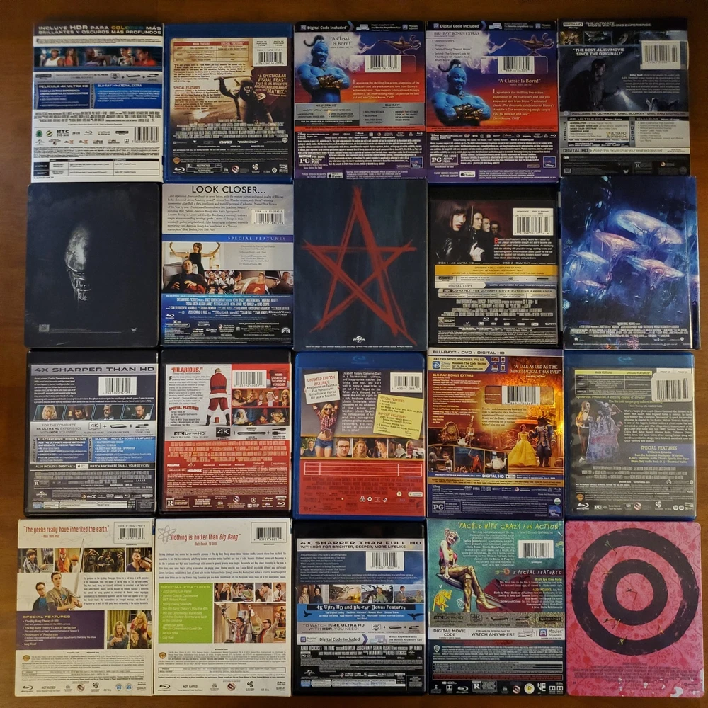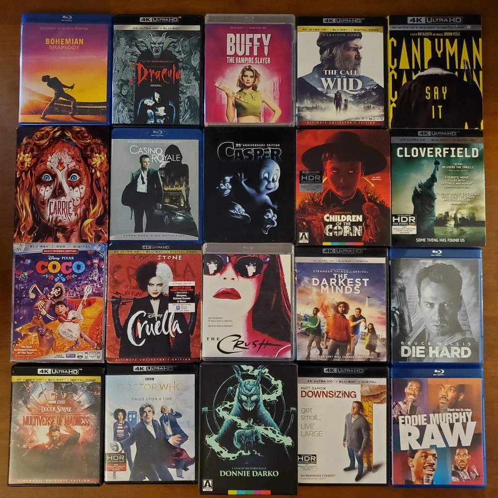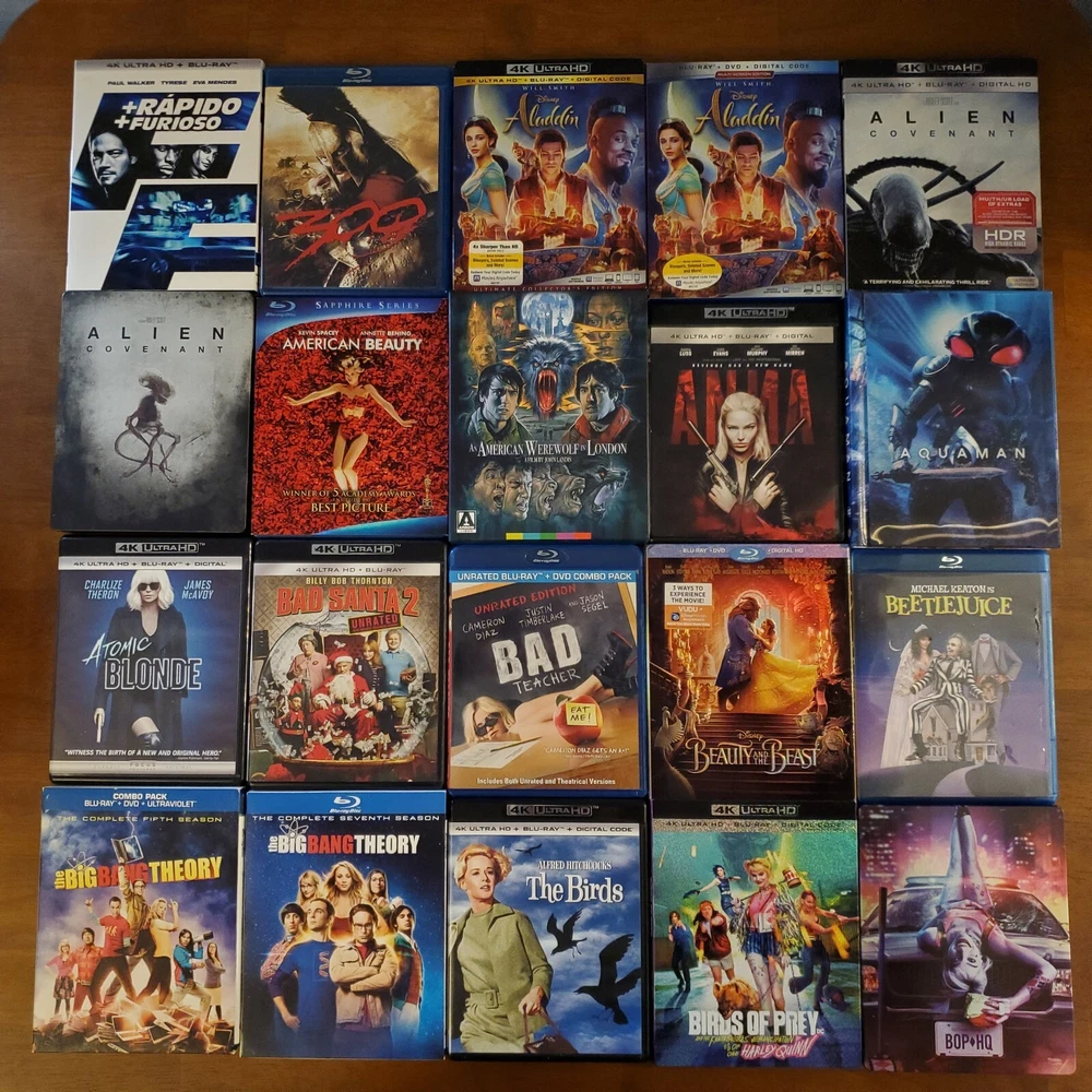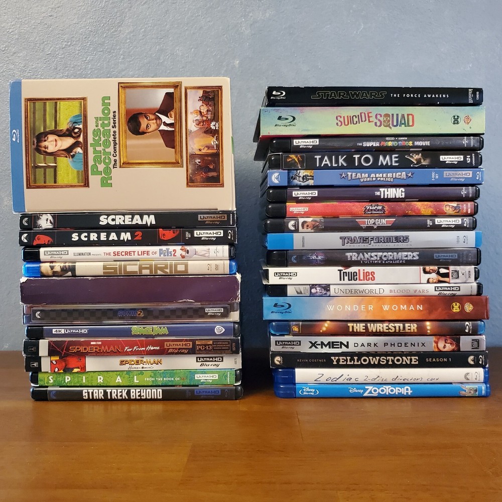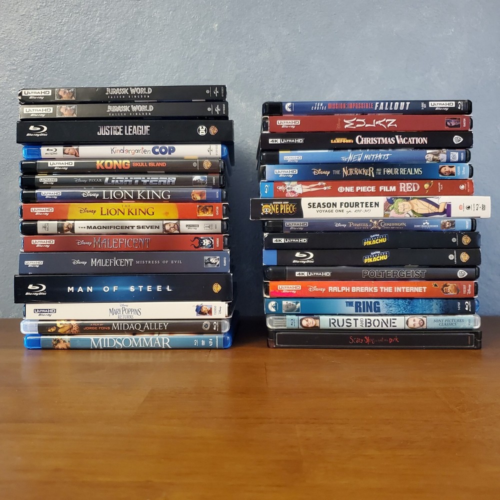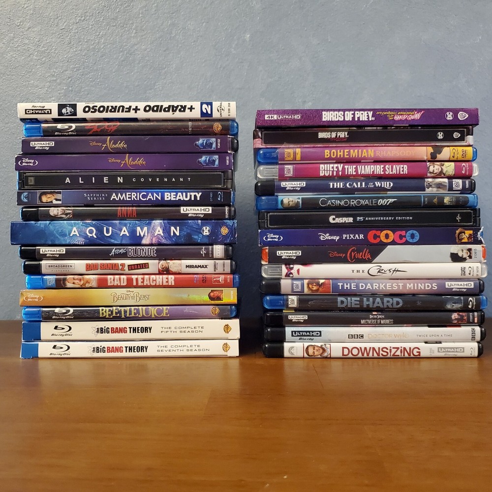 All movies have been inspected and the discs are in good condition. Individual items may include slip cover and/or digital code. Please see pictures for more details. If a digital code is included, the code may be expired. Please do not purchase if the code is the only piece you want. To purchase, select a movie from the drop-down list and add it to your cart. If you're buying multiple items, you can repeat this process to receive the discounts listed below. 15% Off $50 - $100 20% Off $100 or more Thanks for looking! Available Movies: 2 Fast 2 Furious (Spanish) (4K & Blu ray) - $12 300 (Blu ray) - $8 Aladdin (Live-action) (4K, Blu ray & Slipcover) - $11 Aladdin: Live Action (Blu ray, DVD, Digital Code & Slipcover) - $9 Alien: Covenant (Steelbook) (4K & Blu ray) - $42 Anna (4K & Blu ray) - $13 Aquaman (Target Exclusive) (Blu ray, DVD & Digital Code) - $14 Bad Santa 2: Unrated (4K & Blu ray) - $17 Bad Teacher (Blu ray & DVD) - $8 Big Bang Theory: Season 5 (Blu-ray, DVD, Digital Code & Slipcover) - $8 Big Bang Theory: Season 7 (Blu-ray & Slipcover) - $8 Buffy the Vampire Slayer (Blu ray) - $19 Candyman (2021) (4K, Blu ray & Slipcover) - $16 Coco (Blu ray, DVD & Slipcover) - $10 Cruella (4K, Blu ray & Slipcover) - $14 The Darkest Minds (4K & Blu ray) - $14 Doctor Who: Twice Upon a Time (4K) - $14 Downsizing (4K, Blu ray & Digital Code) - $19 Eddie Murphy Raw (Blu ray) - $17 The Emoji Movie (4K & Blu ray) - $15 The Expendables (Blu ray & Slipcover) - $8 Ferdinand (Blu ray, DVD & Digital Code) - $8 Fifty Shades of Grey (4K & Blu ray) - $12 Fifty Shades Trilogy (Steelbook) (4K & Blu ray) - $40 Fish Tank (Blu ray) - $20 Godzilla: King of the Monsters (4K, Blu ray & Slipcover) - $15 Guardians of the Galaxy (Blu ray & Digital Code) - $8 Guardians of the Galaxy 2 (Blu ray, DVD, Digtial Code & Slipcover) - $12 Halloween (2018) (4K & Blu ray) - $15 Hannibal (4K & Blu ray) - $35 He Ovat Paenneet (Blu ray) - $8 Hell Fest (4K, Blu ray & Slipcover) - $30 Hellboy (2019) (4K, Blu ray & Digital Code) - $11 Hobbit: The Desolation of Smaug (Blu ray, DVD, Digtial Code & Slipcover) - $8 How High (Blu ray) - $23 Hunger Games: Catching Fire (Blu ray, DVD, Digtial Code & Slipcover) - $8 Hunger Games: Mockingjay Part 1 (Blu ray, DVD & Digital Code) - $8 The Invisible Man (4K, Blu ray, Digital Code & Slipcover) - $16 Iron Man 3 Movie Collection (Region 2) (Blu ray) - $16 Jason Bourne (4K, Blu ray & Digital Code) - $10 Jungle Cruise (4K, Blu ray & Slipcover) - $14 Jurassic World: Fallen Kingdom (Canadian) (4K, Blu ray, Digital Code & Slipcover) - $10 Justice League (Target Exclusive) (Blu ray & DVD) - $14 Kindergarten Cop (Blu ray) - $9 Kong Skull Island (4K & Blu ray) - $18 Lightyear (4K & Blu ray) - $11 Lion King (Live-action) (4K, Blu ray & Slipcover) - $10 Magnificent 7 (4K & Blu ray) - $13 Maleficent: Mistress of Evil (Target Exclusive) (4K, Blu ray & Slipcover) - $20 Man of Steel (Target Exclusive) (Blu ray & DVD) - $14 Mary Poppins Returns (4K, Blu ray, Digital Code & Slipcover) - $10 Mulan (Live-action) (4K, Blu ray & Slipcover) - $13 Needful Things (4K, Blu ray & Slipcover) - $23 The New Mutants (4K & Blu ray) - $15 The Nutcracker and the Four Realms (4K, Blu ray, Digital Code & Slipcover) - $11 One Piece: Film Red (4K, Blu ray & Slipcover) - $16 One Piece: Season 14 Voyage 1 (Blu ray & DVD) - $30 Pirates of the Caribbean: Dead Men Tell No Tales (4K, Blu ray & Digital Code) - $11 Pokemon- Detective Pikachu (Blu ray, DVD, Digtial Code & Slipcover) - $8 Pokemon: Detective Pikachu (4K, Blu ray & Slipcover) - $13 Ralph Breaks the Internet (4K, Blu ray, Digital Code & Slipcover) - $10 The Ring (Blu ray & Slipcover) - $12 Rust and Bone (Blu ray) - $9 Scary Stories To Tell In The Dark (4K, Blu ray & Slipcover) - $13 Sicario (Blu ray & DVD) - $8 Signs (Blu ray) - $9 Silver Bullet (4K, Blu ray & Slipcover) - $26 Sonic the Hedgehog 2 (Steelbook) (4K, Blu ray, Digital Code & J-Card) - $27 Space Jam (4K & Blu ray) - $14 Spider-man: Homecoming (4K, Blu ray, Digital Code & Slipcover) - $16 Star Wars: The Force Awakens (Blu ray, DVD & Slipcover) - $8 Suicide Squad (Target Exclusive) (Blu ray & DVD) - $14 The Thing (4K & Blu ray) - $19 Thor: Love and Thunder (4K, Blu ray & Digital Code) - $12 Transformers (Blu ray & Slipcover) - $8 Transformers: The Last Knight (Italian) (4K & Blu ray) - $10 Underworld: Blood Wars (Italian) (4K & Blu ray) - $10 Wonder Woman (Target Exclusive) (Blu ray & DVD) - $14 Yellowstone: Season 1 (Special Edition) (Blu Ray & Slipcover) - $25 Zodiac (Blu ray) - $11 Zootopia (Blu ray, DVD & Digital Code) - $8 Sold: Alien: Covenant (4K, Blu ray & Slipcover) - $23 American Beauty (Blu ray & Slipcover) - $12 An American Werewolf in London (4K, Case, Book & Poster) - $65 Atomic Blond (4K & Blu ray) - $13 Beauty and the Beast (2017) (Blu ray, DVD & Slipcover) - $8 Beetlejuice (Blu ray) - $9 The Birds (4K & Blu ray) - $18 Birds of Prey (4K, Blu ray, Digital Code & Slipcover) - $18 Birds of Prey (Steelbook) (4K & Blu ray) - $27 Bohemian Rhapsody (Blu ray & DVD) - $8 Bram Stroker's Dracula (4K & Blu ray) - $15 Call of the Wild (4K & Blu ray) - $11 Carrie (Steelbook) (Blu ray) - $15 Casino Royale (Blu ray) - $8 Casper (Steelbook) (Blu ray & DVD) - $25 Children of the Corn (1984) (4K, Booklet & Slipcover) - $24 Cloverfield (4K, Blu ray & Slipcover) - $18 The Crush (Blu ray) - $14 Die Hard (Blu ray) - $10 Doctor Strange in the Multiverse of Madness (4K & Blu ray) - $14 Donnie Darko (4K, Case, Book & Poster) - $36 The Evil Dead (4K & Blu ray) - $39 Evil Dead Rise (4K, Blu ray, Digital Code & Slipcover) - $15 First Man (4K, Blu ray & Slipcover) - $13 Ford v Ferrari (4K & Blu ray) - $19 Friday the 13th: Part 2 (Steelbook) (Blu ray) - $20 Hacks: Season 1 (Blu ray) - $10 Halloween Kills (4K & Blu ray) - $12 The Hills Have Eyes (4K) - $18 Horizon: An American Saga - Chapter 1 (4K & Slipcover) - $15 IT (Steelbook) (4K & Blu ray) - $20 IT Chapter Two (4K, Blu ray & Slipcover) - $15 IT Chapter Two (Steelbook, Region 2 Disc