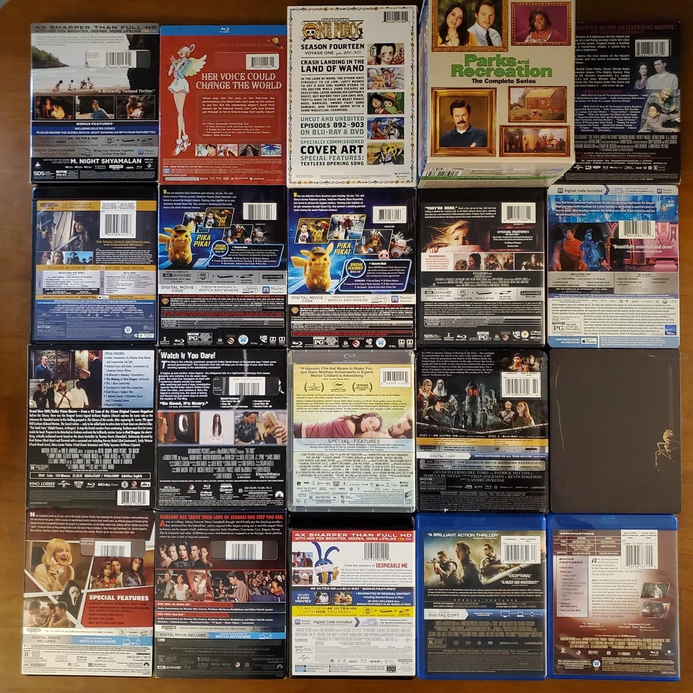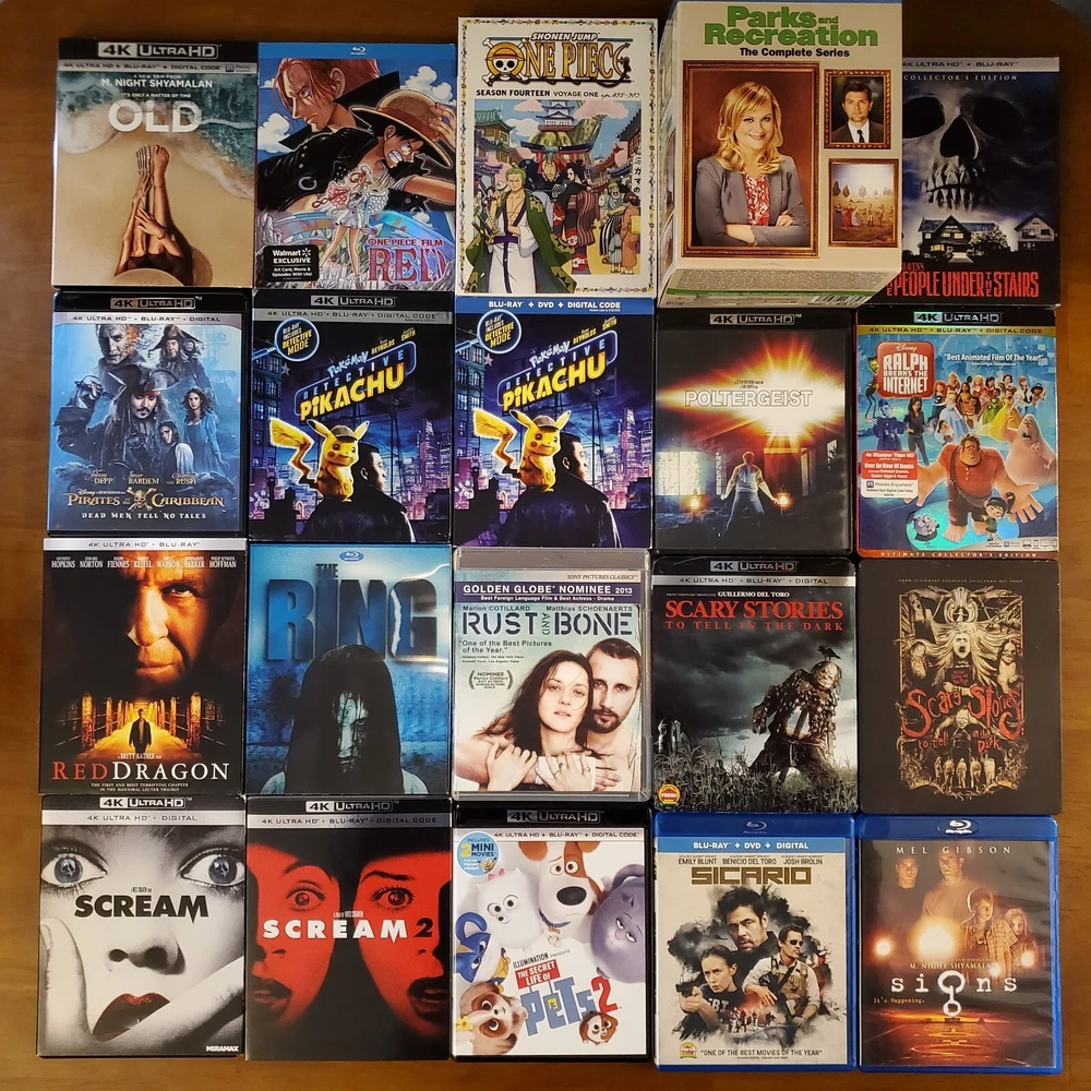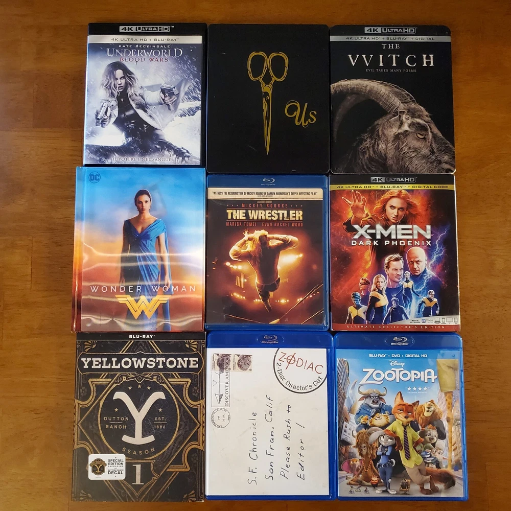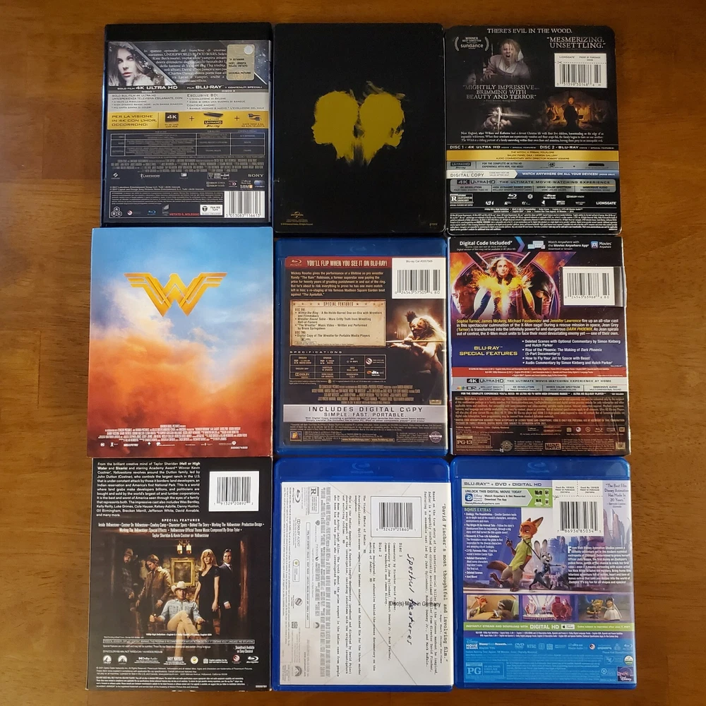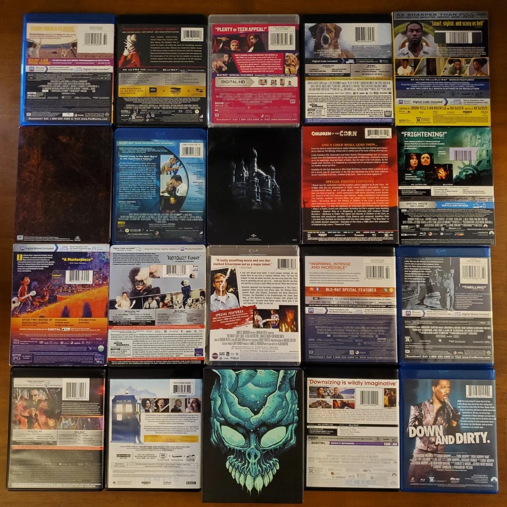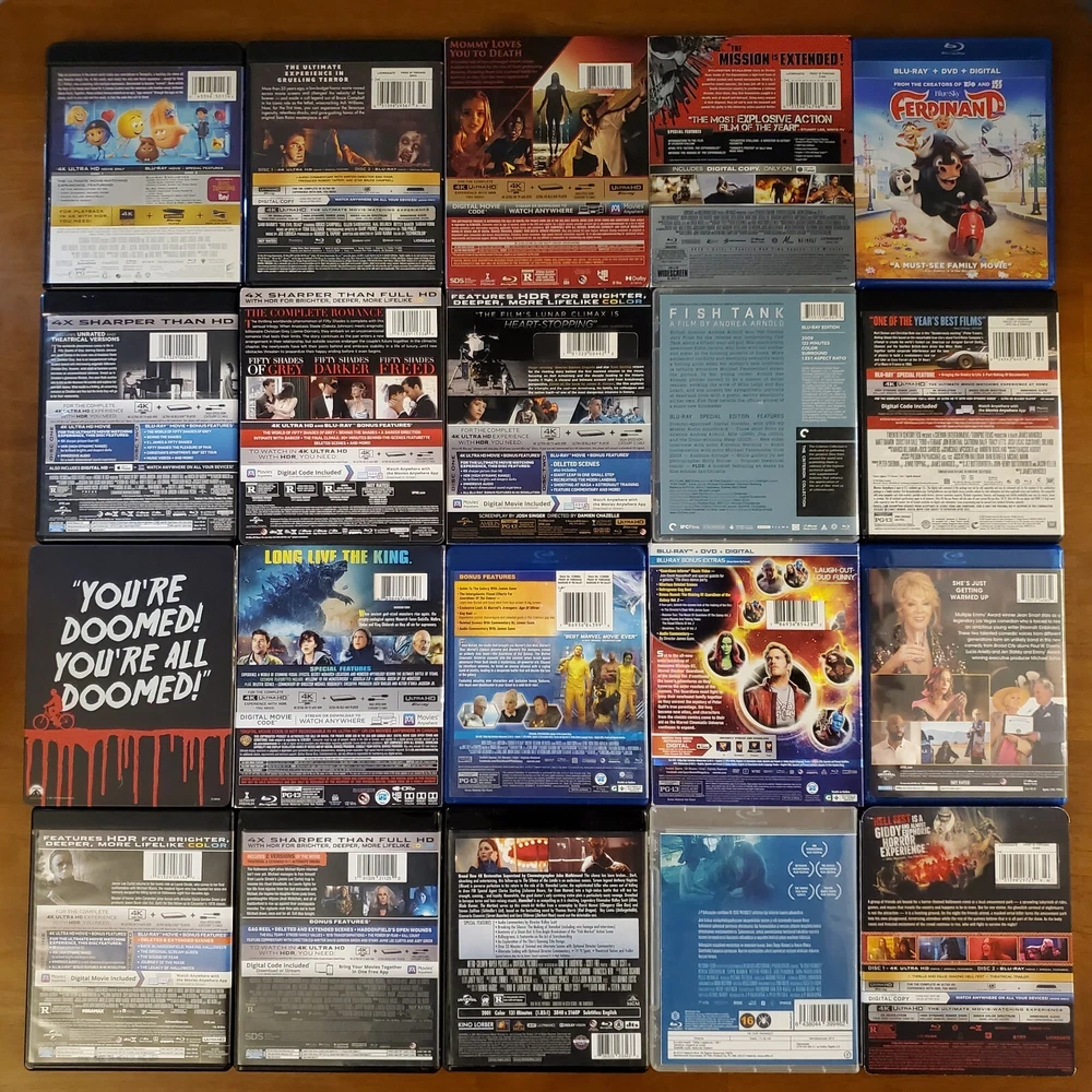 All movies have been inspected and the discs are in good condition. Individual items may include slip cover and/or digital code. Please see pictures for more details. If a digital code is included, the code may be expired. Please do not purchase if the code is the only piece you want. To purchase, select a movie from the drop-down list and add it to your cart. If you're buying multiple items, you can repeat this process to receive the discounts listed below. 15% Off $50 - $100 20% Off $100 or more Thanks for looking! Available Movies: 2 Fast 2 Furious (Spanish) (4K & Blu ray) - $12 300 (Blu ray) - $8 Aladdin (Live-action) (4K, Blu ray & Slipcover) - $11 Aladdin: Live Action (Blu ray, DVD, Digital Code & Slipcover) - $9 Alien: Covenant (Steelbook) (4K & Blu ray) - $42 Anna (4K & Blu ray) - $13 Aquaman (Target Exclusive) (Blu ray, DVD & Digital Code) - $14 Bad Santa 2: Unrated (4K & Blu ray) - $17 Bad Teacher (Blu ray & DVD) - $8 Big Bang Theory: Season 5 (Blu-ray, DVD, Digital Code & Slipcover) - $8 Big Bang Theory: Season 7 (Blu-ray & Slipcover) - $8 Buffy the Vampire Slayer (Blu ray) - $19 Candyman (2021) (4K, Blu ray & Slipcover) - $16 Coco (Blu ray, DVD & Slipcover) - $10 Cruella (4K, Blu ray & Slipcover) - $14 The Darkest Minds (4K & Blu ray) - $14 Doctor Who: Twice Upon a Time (4K) - $14 Downsizing (4K, Blu ray & Digital Code) - $19 Eddie Murphy Raw (Blu ray) - $17 The Emoji Movie (4K & Blu ray) - $15 The Expendables (Blu ray & Slipcover) - $8 Ferdinand (Blu ray, DVD & Digital Code) - $8 Fifty Shades of Grey (4K & Blu ray) - $12 Fifty Shades Trilogy (Steelbook) (4K & Blu ray) - $40 Fish Tank (Blu ray) - $20 Godzilla: King of the Monsters (4K, Blu ray & Slipcover) - $15 Guardians of the Galaxy (Blu ray & Digital Code) - $8 Guardians of the Galaxy 2 (Blu ray, DVD, Digtial Code & Slipcover) - $12 Halloween (2018) (4K & Blu ray) - $15 Hannibal (4K & Blu ray) - $35 He Ovat Paenneet (Blu ray) - $8 Hell Fest (4K, Blu ray & Slipcover) - $30 Hellboy (2019) (4K, Blu ray & Digital Code) - $11 Hobbit: The Desolation of Smaug (Blu ray, DVD, Digtial Code & Slipcover) - $8 How High (Blu ray) - $23 Hunger Games: Catching Fire (Blu ray, DVD, Digtial Code & Slipcover) - $8 Hunger Games: Mockingjay Part 1 (Blu ray, DVD & Digital Code) - $8 The Invisible Man (4K, Blu ray, Digital Code & Slipcover) - $16 Iron Man 3 Movie Collection (Region 2) (Blu ray) - $16 Jason Bourne (4K, Blu ray & Digital Code) - $10 Jungle Cruise (4K, Blu ray & Slipcover) - $14 Jurassic World: Fallen Kingdom (Canadian) (4K, Blu ray, Digital Code & Slipcover) - $10 Justice League (Target Exclusive) (Blu ray & DVD) - $14 Kindergarten Cop (Blu ray) - $9 Kong Skull Island (4K & Blu ray) - $18 Lightyear (4K & Blu ray) - $11 Lion King (Live-action) (4K, Blu ray & Slipcover) - $10 Magnificent 7 (4K & Blu ray) - $13 Maleficent: Mistress of Evil (Target Exclusive) (4K, Blu ray & Slipcover) - $20 Man of Steel (Target Exclusive) (Blu ray & DVD) - $14 Mary Poppins Returns (4K, Blu ray, Digital Code & Slipcover) - $10 Mulan (Live-action) (4K, Blu ray & Slipcover) - $13 Needful Things (4K, Blu ray & Slipcover) - $23 The New Mutants (4K & Blu ray) - $15 The Nutcracker and the Four Realms (4K, Blu ray, Digital Code & Slipcover) - $11 One Piece: Film Red (4K, Blu ray & Slipcover) - $16 One Piece: Season 14 Voyage 1 (Blu ray & DVD) - $30 Pirates of the Caribbean: Dead Men Tell No Tales (4K, Blu ray & Digital Code) - $11 Pokemon- Detective Pikachu (Blu ray, DVD, Digtial Code & Slipcover) - $8 Pokemon: Detective Pikachu (4K, Blu ray & Slipcover) - $13 Ralph Breaks the Internet (4K, Blu ray, Digital Code & Slipcover) - $10 The Ring (Blu ray & Slipcover) - $12 Rust and Bone (Blu ray) - $9 Scary Stories To Tell In The Dark (4K, Blu ray & Slipcover) - $13 Sicario (Blu ray & DVD) - $8 Signs (Blu ray) - $9 Silver Bullet (4K, Blu ray & Slipcover) - $26 Sonic the Hedgehog 2 (Steelbook) (4K, Blu ray, Digital Code & J-Card) - $27 Space Jam (4K & Blu ray) - $14 Spider-man: Homecoming (4K, Blu ray, Digital Code & Slipcover) - $16 Star Wars: The Force Awakens (Blu ray, DVD & Slipcover) - $8 Suicide Squad (Target Exclusive) (Blu ray & DVD) - $14 The Thing (4K & Blu ray) - $19 Thor: Love and Thunder (4K, Blu ray & Digital Code) - $12 Transformers (Blu ray & Slipcover) - $8 Transformers: The Last Knight (Italian) (4K & Blu ray) - $10 Underworld: Blood Wars (Italian) (4K & Blu ray) - $10 Wonder Woman (Target Exclusive) (Blu ray & DVD) - $14 Yellowstone: Season 1 (Special Edition) (Blu Ray & Slipcover) - $25 Zodiac (Blu ray) - $11 Zootopia (Blu ray, DVD & Digital Code) - $8 Sold: Alien: Covenant (4K, Blu ray & Slipcover) - $23 American Beauty (Blu ray & Slipcover) - $12 An American Werewolf in London (4K, Case, Book & Poster) - $65 Atomic Blond (4K & Blu ray) - $13 Beauty and the Beast (2017) (Blu ray, DVD & Slipcover) - $8 Beetlejuice (Blu ray) - $9 The Birds (4K & Blu ray) - $18 Birds of Prey (4K, Blu ray, Digital Code & Slipcover) - $18 Birds of Prey (Steelbook) (4K & Blu ray) - $27 Bohemian Rhapsody (Blu ray & DVD) - $8 Bram Stroker's Dracula (4K & Blu ray) - $15 Call of the Wild (4K & Blu ray) - $11 Carrie (Steelbook) (Blu ray) - $15 Casino Royale (Blu ray) - $8 Casper (Steelbook) (Blu ray & DVD) - $25 Children of the Corn (1984) (4K, Booklet & Slipcover) - $24 Cloverfield (4K, Blu ray & Slipcover) - $18 The Crush (Blu ray) - $14 Die Hard (Blu ray) - $10 Doctor Strange in the Multiverse of Madness (4K & Blu ray) - $14 Donnie Darko (4K, Case, Book & Poster) - $36 The Evil Dead (4K & Blu ray) - $39 Evil Dead Rise (4K, Blu ray, Digital Code & Slipcover) - $15 First Man (4K, Blu ray & Slipcover) - $13 Ford v Ferrari (4K & Blu ray) - $19 Friday the 13th: Part 2 (Steelbook) (Blu ray) - $20 Hacks: Season 1 (Blu ray) - $10 Halloween Kills (4K & Blu ray) - $12 The Hills Have Eyes (4K) - $18 Horizon: An American Saga - Chapter 1 (4K & Slipcover) - $15 IT (Steelbook) (4K & Blu ray) - $20 IT Chapter Two (4K, Blu ray & Slipcover) - $15 IT Chapter Two (Steelbook, Region 2 Disc