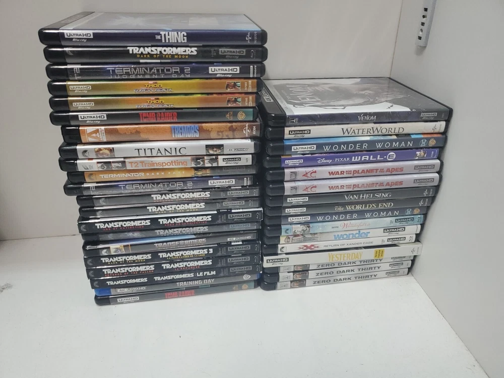 FORMAT- All movies are 4K UHD, most also include a Blu-Ray movie also. ALL MOVIES HAVE THEIR CASE AND ARTWORK IN ADDITION TO THE DISC(S). HOW TO BUY- Choose a movie title from the drop-down list (located under price). Add to your cart. Then repeat. BUY 7 Get 1 FREE! - For every 8 movies you add to your cart it will automatically give you 1 of them Free. So, if you add 16, then 2 would be free, 24=3 free, etc. You can mix and match between my 4K movies lots for this deal also. SHIPPING- Is a FLAT RATE per order regardless of how many you buy. Buy a bunch at once to get the best value. EMPTY CASES- One of the options on the list is for "replacement cases", Those are NEW and Original. MESSAGE ME- For any special requests or questions that you have. I'm ready to help! Check out my other 4K listing for Canadian and International release versions: https://www.ebay.com/itm/395461209505 4K Movie Lot- You Choose! UHD, Blu Ray, Canadian and International, Some French | eBay NEW AND SEALED 4K movies 4K Movie Lot- You Choose! NEW SEALED. UHD, Blu Ray, some with Slip Covers | eBay 4K (DISC ONLY) Movies 4K Movie Lot- You Choose! UHD, DISC ONLY, NO CASES, NO BLU RAY | eBay 4K Slipcover Replacements 4K Movie SLIP COVER ONLY Lot- You Choose! NO MOVIES, JUST CARDBOARD SLIPCOVERS | eBay 4K Steelbooks and Special Editions 4K Movie Lot- You Choose! UHD, Blu Ray, Steel Book STEELBOOK or SPECIAL EDITION | eBay DIGITAL CODES- New movies will include their codes, used movies may have a code inside but not guaranteed to work.