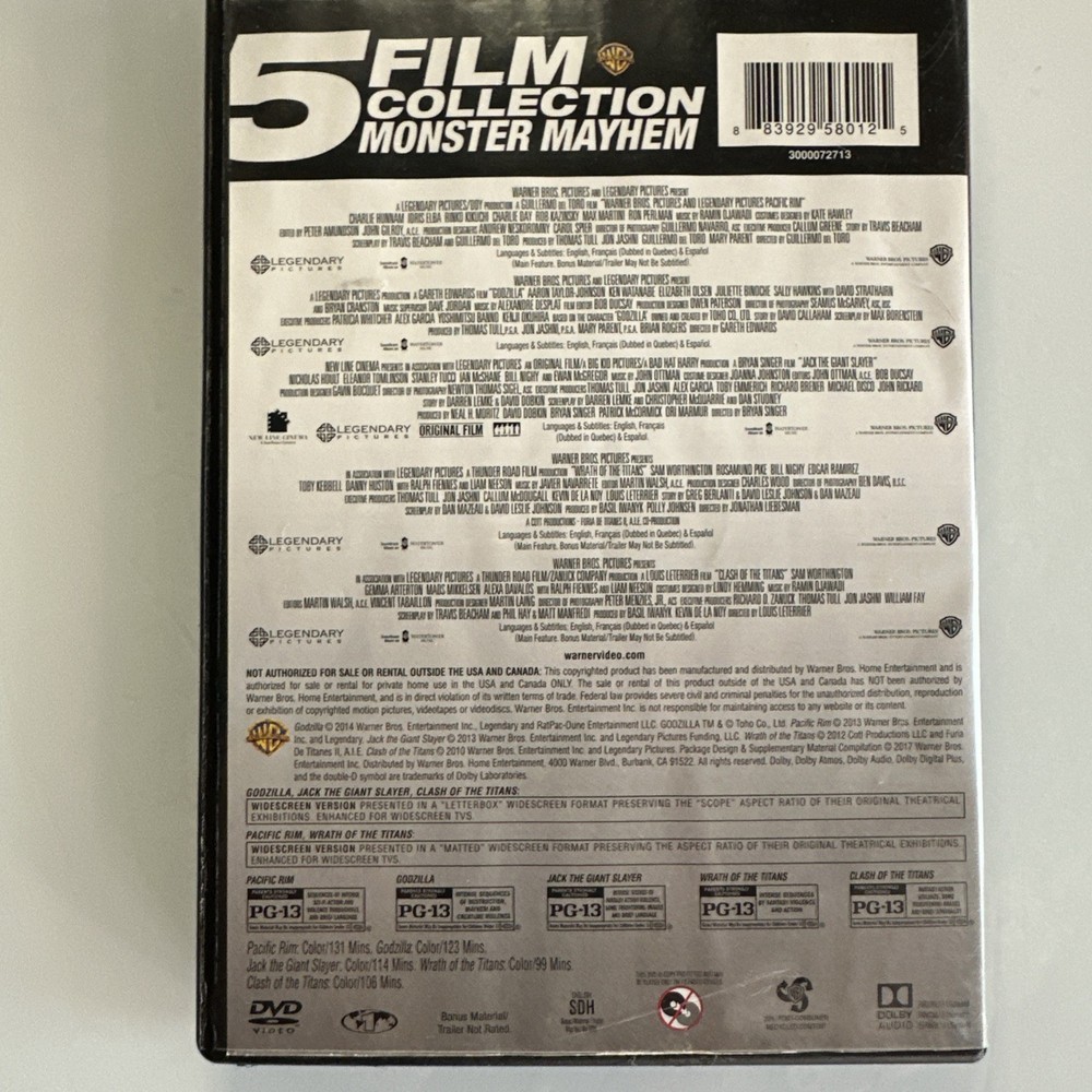 This 5-film Monster Mayhem DVD set is a must-have for any kaiju fan! Packed with epic battles from Godzilla to Pacific Rim, the action never stops. Great picture quality, and the collection is perfect for movie nights. The seller is reliable, and their guarantee gives extra peace of mind. Highly recommended for giant monster lovers!
