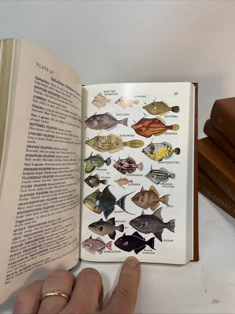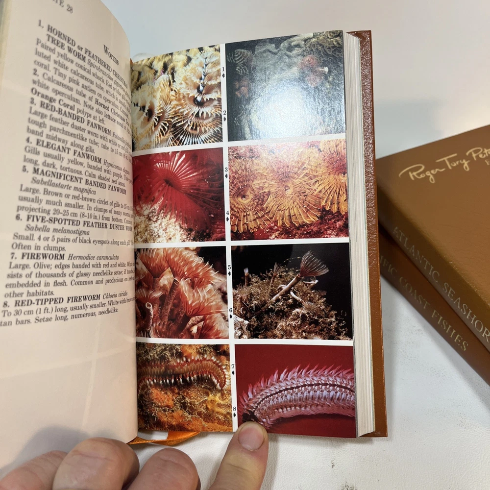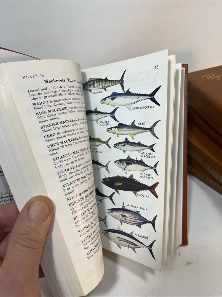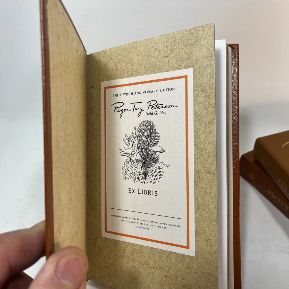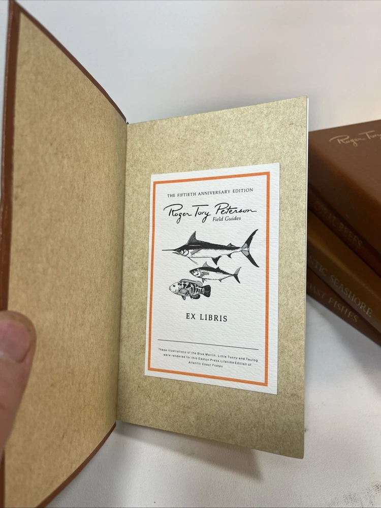 The product is a set of five Roger Tory Peterson Field Guides on Fishes, Coral, and Seashore, published by Easton Press as a Collector's Edition. The guides are bound in leather and written in English, making them valuable additions to any outdoor and nature enthusiast's collection. Peterson's expertise and detailed illustrations make these field guides essential for exploring and identifying the fish & marine life in the coral and seashore environments. Ideal for collectors or those interested in the natural world, these books offer a comprehensive look at the diverse fish, coral, and seashore species. Thank you for looking at this interesting lot of books. These lots are great values and an excellent way to build up your personal library. Please take a look at all of the photos. We will always try to highlight any condition issues (if there are any). We take pride in our careful rigid packaging and prompt shipping. Please follow our store as we post new items including lots like these almost every day. Have a great day! Some of our recent feedback: Excellent experience! Quick delivery and item was just as described. It was the best packaging of a book I've ever received. Thank you. Thank you! The book was as described and arrived packaged well and I couldn’t be more happy with it. I would buy from this seller again. Best regards! Lightening quick shipping, well-packaged. Book was received in finer condition than described. Very pleased!