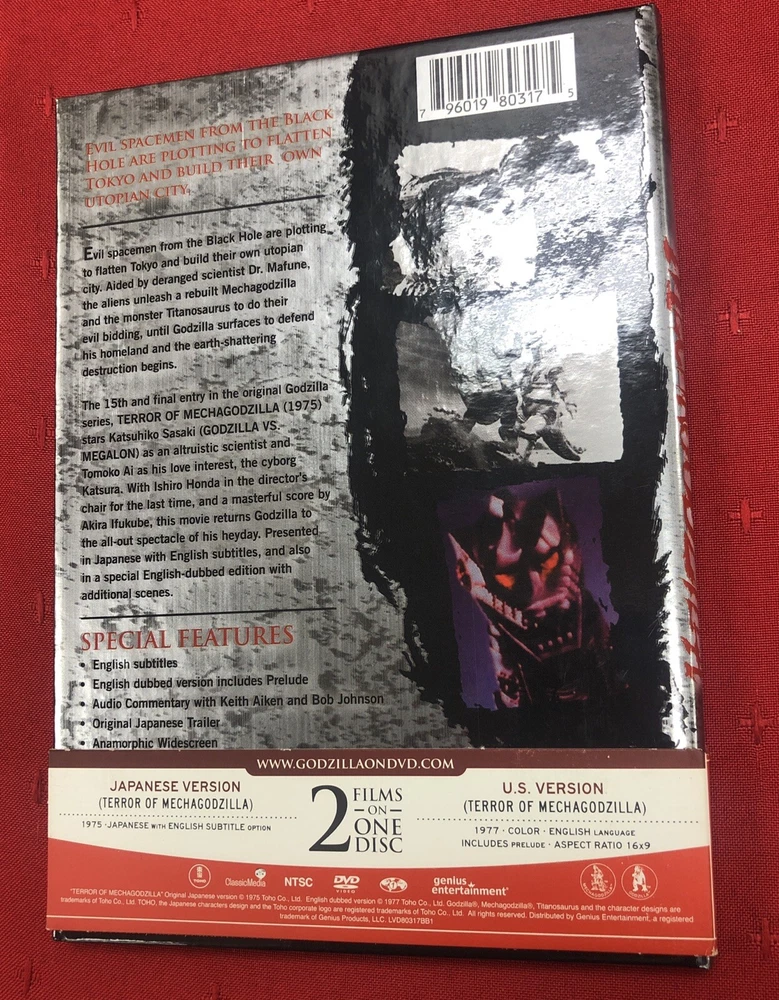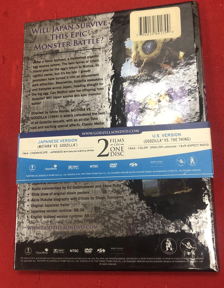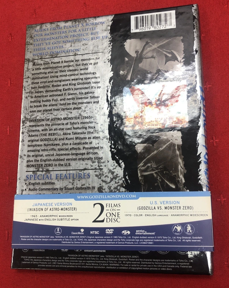 6 Ct. DVDs Invasion of Astro-Monster Mothra vs. Godzilla Terror of Mechagodzilla All Monsters Attack Godzilla Raids Again Ghidorah the Three-Headed Monster Get ready to experience the ultimate foreign language movie collection with these 6 Ct. Godzilla DVDs. All DVDs are in Japanese language and feature the iconic Godzilla monster in various battles and adventures. These DVDs are perfect for any movie lover or Godzilla fan, and are a great addition to any collection. With a range of sub-genres and genres, including action, drama, and suspense, these DVDs are sure to provide endless hours of entertainment. Don't miss out on the chance to own this amazing collection!