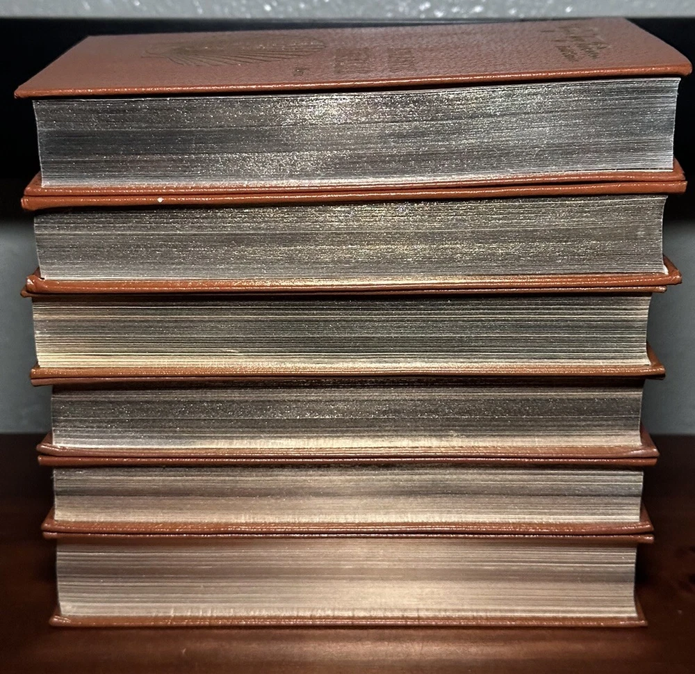 All six of these books are in excellent condition. Included with each is its clean ex Libris insert. They no writing or damage. The edges of the pages are gold and the covers are genuine leather. A great addition to any Easton Press collection. This set will come as pictured. Get in touch with questions for a quick reply. Fast Shipping! All of the books and magazines in our collection have been hand picked for your enjoyment. We do our best to ensure that they are clean and free from any considerable amount of damage. Every book and magazine is individually handled and described, tagged, bagged and ready for its next reader. We do miss things here and there and, as a result, you might see something we didn't. We hope that you understand that these things happen, and if you are not satisfied, we also hope that you would let us know so we can remedy the situation. We wouldn't be here without you and we want to make sure you are happy with our services. Please do not hesitate to reach out with any questions. Also, check out our store for deals on all of our books. We can do small to large orders and, save for carrier damage, your books will arrive in the same condition they were pictured. We guarantee it. Thanks again for choosing LegitWidgets!