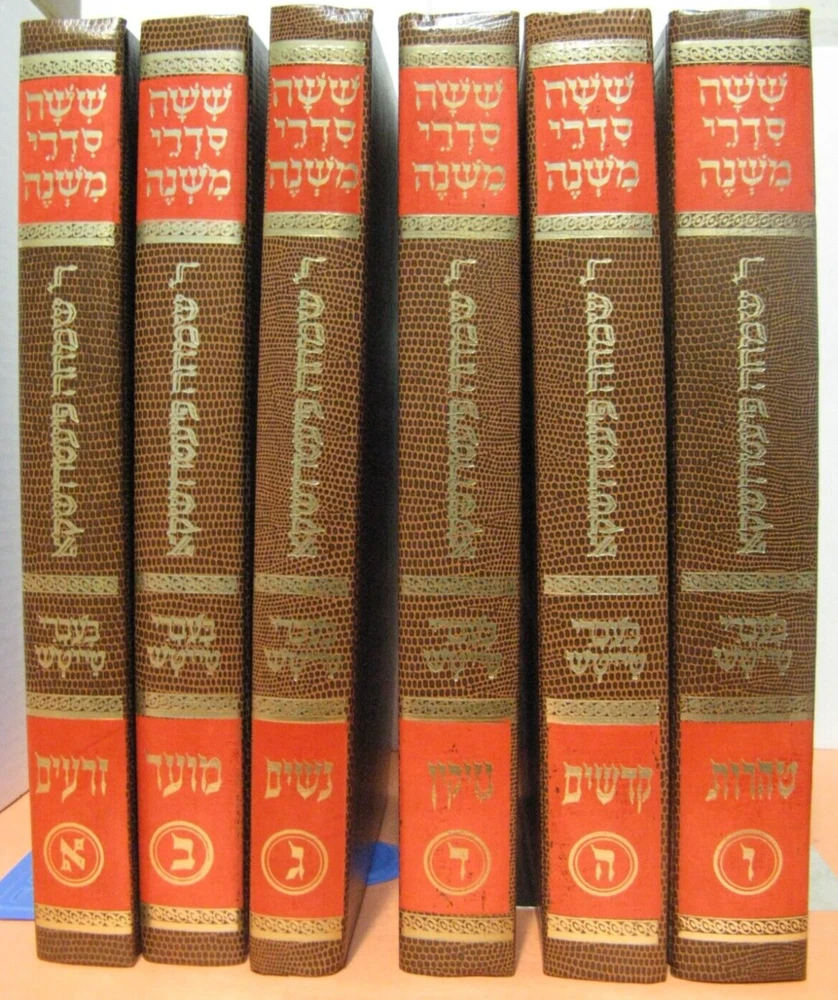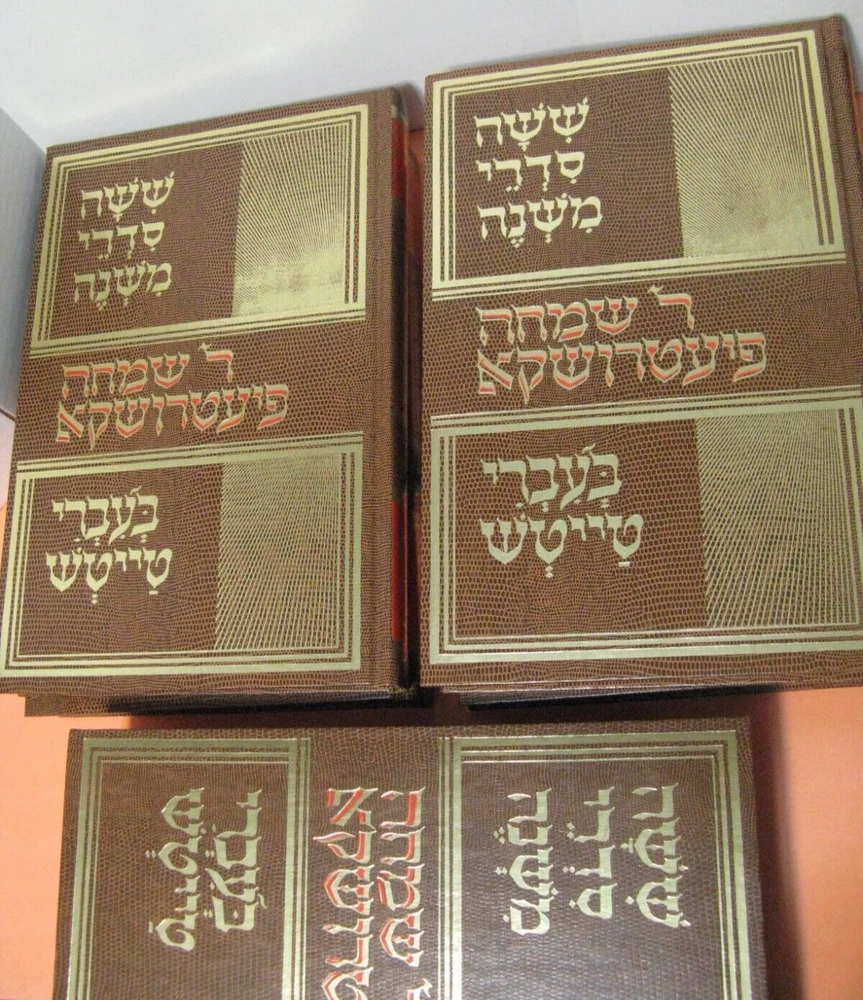 Description: This is a special, deluxe, 11 inch tall edition of this classic commentary. Excellent, white, clean pages throughout. A must for any scholar studying the Mishnah. The paper is a much better quality type, as well as the binding and thick covers. No writing in the interior. I noticed that a few of the volumes have lite staining to a few initial pages at corners only. Also tops of pages from the outside when closed show some darkening, as shown, but actual pages are bright white. That's the only condition item to report, everything else is very nice. There is no writing in the interior and the volumes don't seem to be used. Printed in 1955 in New York. Attention phone-users: To actually read the words in my pictures & view tiny details. Click on browser menu, select 'Desktop site'. After reload, tap on main picture, it will open in spectacular viewing quality, and you will even be able to read the tiniest words in my pictures. This listing has pictures of the actual book or books being sold, no stock-photos or photos of similar items, I took a complete set of new pictures especially for this listing and I have carefully described the condition of this specific item that you are looking at. Thank You. We accept all payment methods which are shown on this site as capable of accepting, including Paypal, payment via personal check or MO can be arranged via messaging me, website permitting.