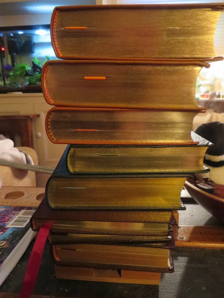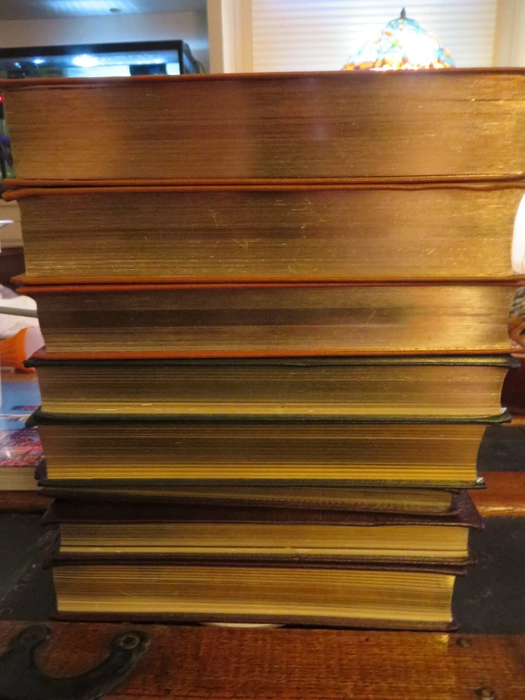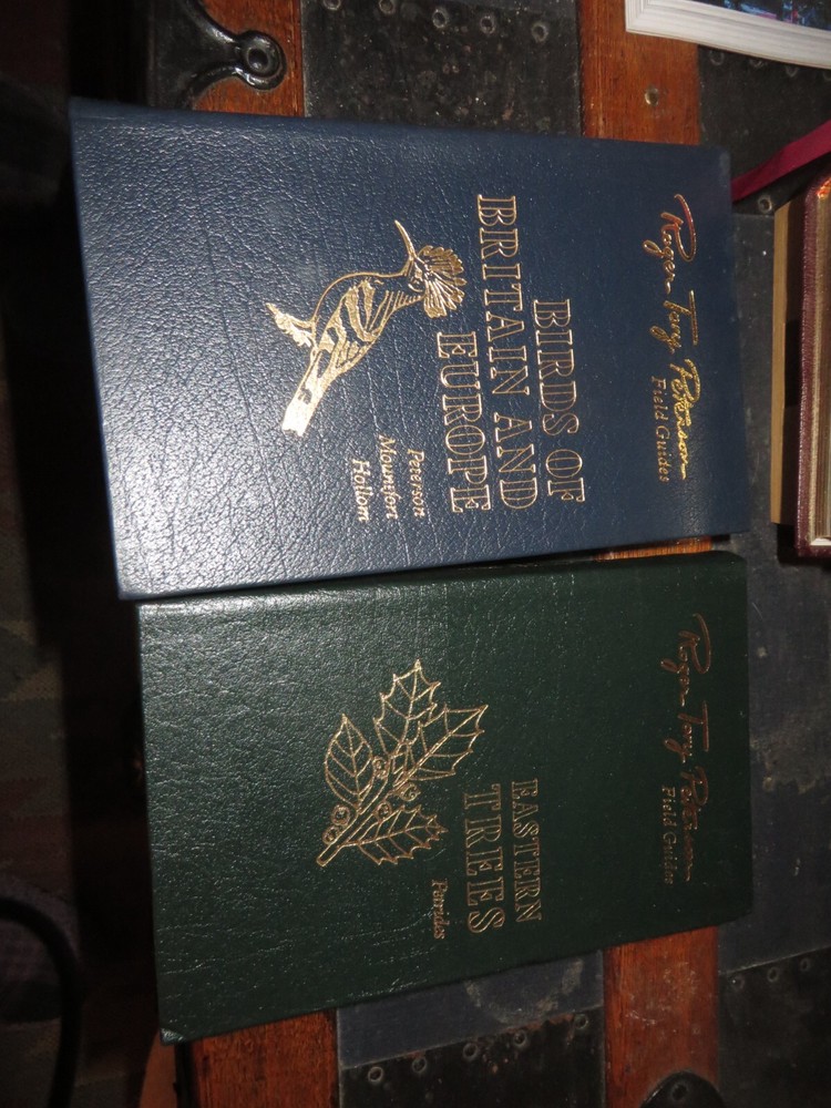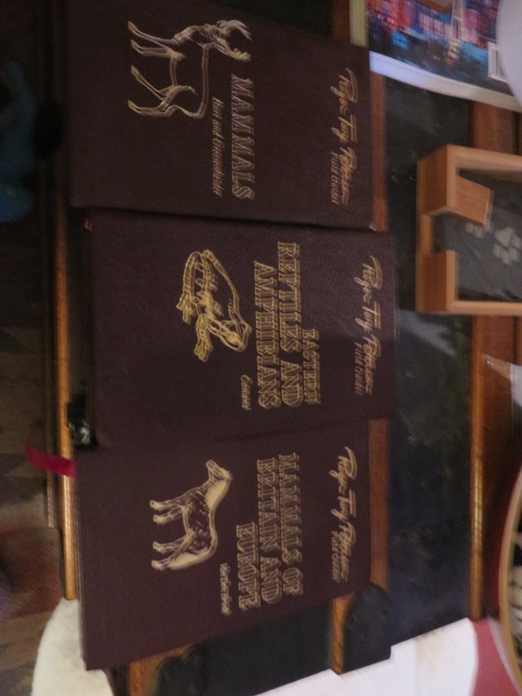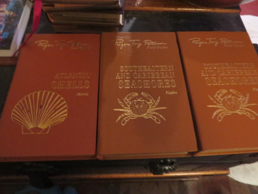 8 books - 7 different titles. 2 copies of Southeastern Seashores. They are as follows: Mammals Mammals of Britain & Europe Eastern Reptiles/Amphibians Birds of Britian and Europe Eastern trees Atlantic Shells Southeastern Seashores, 2 of these leather covers, gilded pages. the books have been read, some more than the others. No tears or rips. Some of the gilded lettering has wear. some of the corners have some slight dents, some pages may be creased. Still in nice shape and great field guides