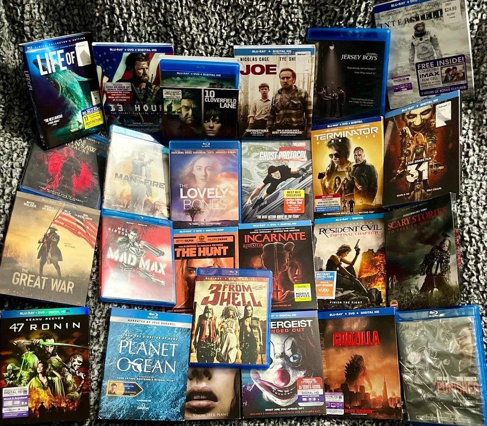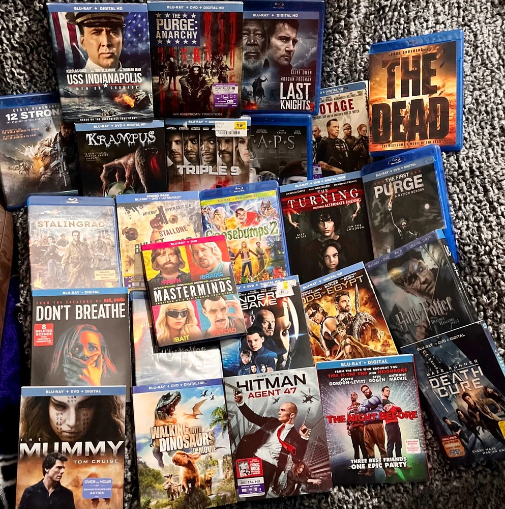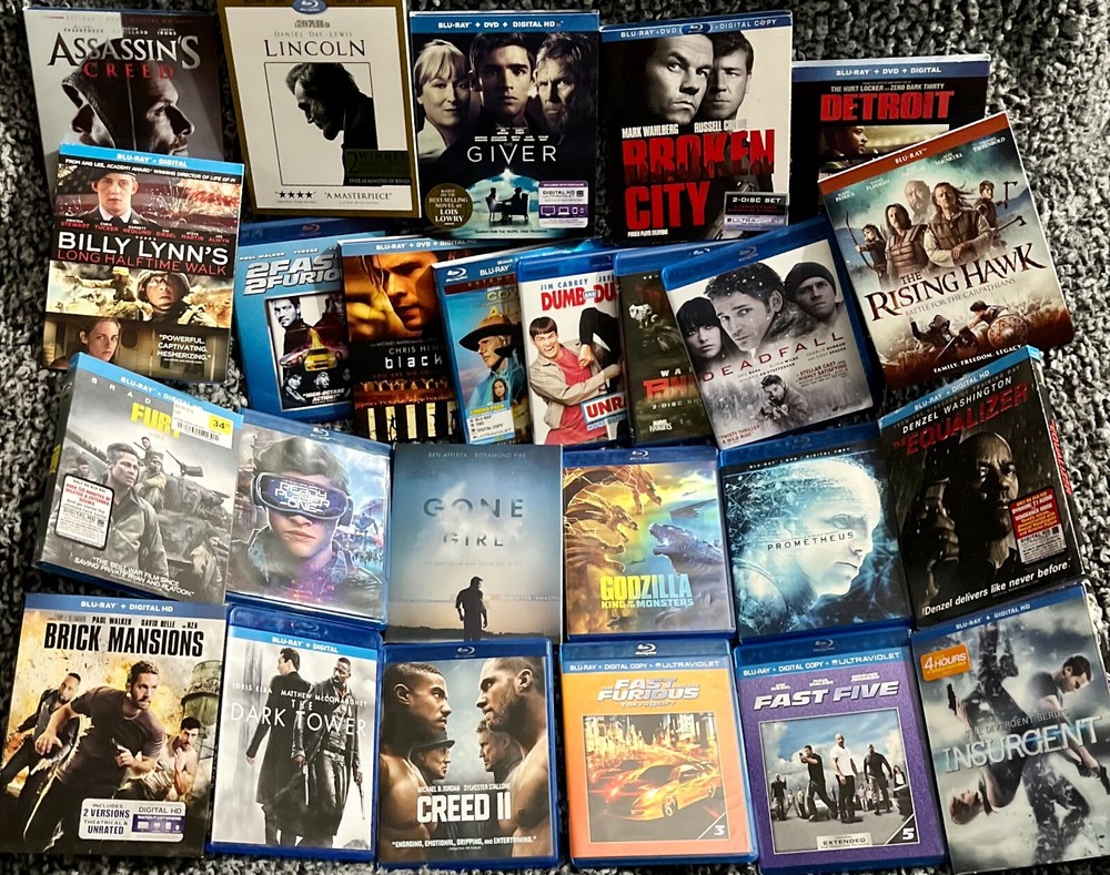 $9 FREE SHIPPING PRE-OWNED BLU-RAY MOVIES....100 TO CHOOSE FROM!!! THIS AUCTION IS FOR PRE-OWNED BLU-RAY MOVIES. MOST IF NOT ALL OF THE PRE-OWNED BLU-RAY MOVIES HAVE BEEN VIEWED ONE TIME ONLY! MANY OF THE BLU-RAYS COME WITH SLIPCOVERS. WE WILL COMBINE ANY MOVIES TO SHIP TOGETHER. $9 BLU-RAY LIST-FREE SHIPPING: CARRIE 2013 BLU-RAY/DVD COMBO W/3D SLIPCOVER POLTERGEIST EXTENDED CUT 2015 BLU-RAY W/SLIPCOVER GODZILLA 2014 BLU-RAY/DVD W/SLIPCOVER THE PUNISHER 2004 BLU-RAY PLANET OCEAN 2013 BLU-RAY W/SLIPCOVER 47 RONIN 2014 BLU-RAY/DVD COMBO W/SLIPCOVER 13 HOURS 2016 BLU-RAY/DVD COMBO W/SLIPCOVER THE GREAT WAR 2019 BLU-RAY W/SLIPCOVER 3 FROM HELL 2019 BLU-RAY/DVD COMBO THE TEXAS CHAINSAW MASSACRE 2009 BLU-RAY BLU-RAY/DVD COMBO W/SLIPCOVER SCARY STORIES TO TELL IN THE DARK 2019 BLU-RAY/DVD COMBO W/SLIPCOVER THE HUNT 2020 BLU-RAY/DVD COMBO W/SLIPCOVER INCARNATE UNRATED 2017 BLU-RAY/DVD COMBO W/SLIPCOVER RESIDENT EVIL THE FINAL CHAPTER 2017 BLU-RAY W/SLIPCOVER 31 2016 BLU-RAY W/SLIPCOVER LIFE OF PI 3 DISC COLLECTOR'S EDITION 2012 3D BLU-RAY W/SLIPCOVER 10 CLOVERFIELD LANE 2016 BLU-RAY/DVD COMBO W/SLIPCOVER JOE 2014 BLU-RAY W/SLIPCOVER JERSEY BOYS 2014 BLU-RAY/DVD COMBO INTERSTELLAR 2015 BLU-RAY/DVD COMBO W/SLIPCOVER TERMINATOR DARK FATE 2020 BLU-RAY/DVD COMBO W/SLIPCOVER MISSION IMPOSSIBLE GHOST PROTOCOL 3 DISC 2012 BLU-RAY/DVD COMBO W/SLIPCOVER THE LOVELY BONES 2010 BLU-RAY MAN ON FIRE 2014 BLU-RAY MAD MAX 2015 BLU-RAY GOOSEBUMPS 2 2018 BLU-RAY/DVD COMBO BULLET TO THE HEAD 2013 BLU-RAY/DVD COMBO W/SLIPCOVER STALINGRAD 2014 2 DISC 3D BLU-RAY THE FIRST PURGE 2016 BLU-RAY/DVD COMBO DON'T BREATHE 2016 BLU-RAY W/SLIPCOVER THE DEAD 2012 BLU-RAY THE PURGE ANARCHY 2014 BLU-RAY/DVD COMBO W/SLIPCOVER USS INDIANAPOLIS MEN OF COURAGE 2017 BLU-RAY W/SLIPCOVER LAST KNIGHTS 2015 BLU-RAY 12 STRONG 2018 BLU-RAY/DVD COMBO SABOTAGE 2014 BLU-RAY/DVD COMBO W/SLIPCOVER T A P S 2010 BLU-RAY TRIPLE 9 2016 BLU-RAY W/SLIPCOVER KRAMPUS 2016 BLU-RAY/DVD COMBO W/SLIPCOVER THE TURNING 2020 BLU-RAY/DVD COMBO W/SLIPCOVER THE MUMMY 2017 BLU-RAY/DVD COMBO W/SLIPCOVER THE NIGHT BEFORE 2016 BLU-RAY W/SLIPCOVER HITMAN AGENT 47 2015 BLU-RAY W/SLIPCOVER W/RARE MINI COMIC MAZE RUNNER THE DEATH CURE 2018 BLU-RAY/DVD COMBO W/RARE MINI COMIC W/SLIPCOVER MASTERMINDS 2016 BLU-RAY/DVD COMBO W/SLIPCOVER GOD OF EGYPT 2016 BLU-RAY W/SLIPCOVER ENDER'S GAME 2014 BLU-RAY/DVD COMBO W/SLIPCOVER HARRY POTTER AND THE DEATHLY HALLOWS PART 2 4 DISC 2011 BLU-RAY/DVD COMBO HARRY POTTER AND THE DEATHLY HALLOWS PART 1 4 DISC 2011 BLU-RAY/DVD COMBO W/3D SLIPCOVER WALKING WITH DINOSAURS THE MOVIE 2014 BLU-RAY/DVD COMBO W/SLIPCOVER JURASSIC WORLD 2015 BLU-RAY/DVD COMBO W/SLIPCOVER JURASSIC WORLD FALLEN KINGDOM 2018 BLU-RAY/DVD COMBO W/SLIPCOVER JOHN WICK 2015 BLU-RAY/DVD COMBO W/SLIPCOVER FURIOUS 7 EXTENDED EDITION 2015 BLU-RAY/DVD COMBO W/SLIPCOVER BAD BOYS FOR LIFE 2020 BLU-RAY/DVD COMBO W/SLIPCOVER CRIMINAL 2016 BLU-RAY/DVD COMBO W/SLIPCOVER LIVE DIE REPEAT 2014 BLU-RAY/DVD COMBO W/SLIPCOVER DARKEST HOUR 2017 BLU-RAY/DVD COMBO W/SLIPCOVER POPSTAR NEVER STOP NEVER STOPPING 2016 BLU-RAY/DVD COMBO W/SLIPCOVER BLEED FOR THIS 2017 BLU-RAY/DVD COMBO W/SLIPCOVER FAST & FURIOUS 6 EXTENDED EDITION 2013 BLU-RAY/DVD COMBO W/SLIPCOVER STAR TREK INTO DARKNESS 2013 BLU-RAY/DVD COMBO W/SLIPCOVER RED 2 2013 BLU-RAY/DVD COMBO W/SLIPCOVER THE CALL 2013 BLU-RAY/DVD COMBO ANNIHILATION 2018 BLU-RAY/DVD COMBO BLOODSHOT 2020 BLU-RAY/DVD COMBO IDENTITY THIEF UNRATED EDITION 2013 BLU-RAY/DVD COMBO W/SLIPCOVER PRISONERS 2013 BLU-RAY/DVD COMBO W/SLIPCOVER POWER RANGERS 2017 BLU-RAY/DVD COMBO W/SLIPCOVER ROCK OF AGES 2012 BLU-RAY/DVD COMBO W/SLIPCOVER RUSH 2014 BLU-RAY/DVD COMBO W/SLIPCOVER F8 THE FATE OF THE FURIOUS 2017 BLU-RAY/DVD COMBO W/SLIPCOVER THE BOY NEXT DOOR 2015 BLU-RAY/DVD COMBO W/SLIPCOVER ALLEGIANT 2016 BLU-RAY/DVD COMBO W/3D SLIPCOVER AMERICAN ULTRA 2015 BLU-RAY/DVD COMBO W/SLIPCOVER ASSASSIN'S CREED 2017 BLU-RAY/DVD COMBO W/SLIPCOVER DETROIT 2017 BLU-RAY/DVD COMBO W/SLIPCOVER BROKEN CITY 2013 BLU-RAY/DVD COMBO W/SLIPCOVER THE GIVER 2014 BLU-RAY/DVD COMBO W/SLIPCOVER LINCOLN 2013 3 DISC BLU-RAY/DVD COMBO W/SLIPCOVER BRICK MANSIONS 2014 BLU-RAY W/SLIPCOVER FURY 2015 BLU-RAY W/SLIPCOVER BILLY LYNN'S LONG HALFTIME WALK 2017 BLU-RAY W/SLIPCOVER INSURGENT 2015 BLU-RAY W/3D SLIPCOVER THE EQUALIZER 2014 BLU-RAY W/SLIPCOVER THE RISING HAWK 2019 BLU-RAY W/SLIPCOVER FAST FIVE EXTENDED EDITION 2013 BLU-RAY THE FAST AND THE FURIOUS TOKYO DRIFT 2013 BLU-RAY THE DARK TOWER 2017 BLU-RAY CREED II 2019 BLU-RAY/DVD COMBO GODZILLA KING OF THE MONSTERS 2019 BLU-RAY/DVD COMBO PROMETHEUS 2012 BLU-RAY/DVD COMBO READY PLAYER ONE 2018 BLU-RAY/DVD COMBO DEADFALL 2013 BLU-RAY DUMB AND DUMBER UNRATED 2008 BLU-RAY PUNISHER WAR ZONE 2 DISC SPECIAL EDITION 2009 BLU-RAY GONE GIRL 2014 BLU-RAY W/AMAZING AMY TATTLE TALE MINI BOOK COWBOYS & ALIENS EXTENDED EDITION 2011 BLU-RAY/DVD COMBO W/SLIPCOVER 2 FAST 2 FURIOUS 2011 BLU-RAY BLACKHAT 2015 BLU-RAY/DVD COMBO W/SLIPCOVER