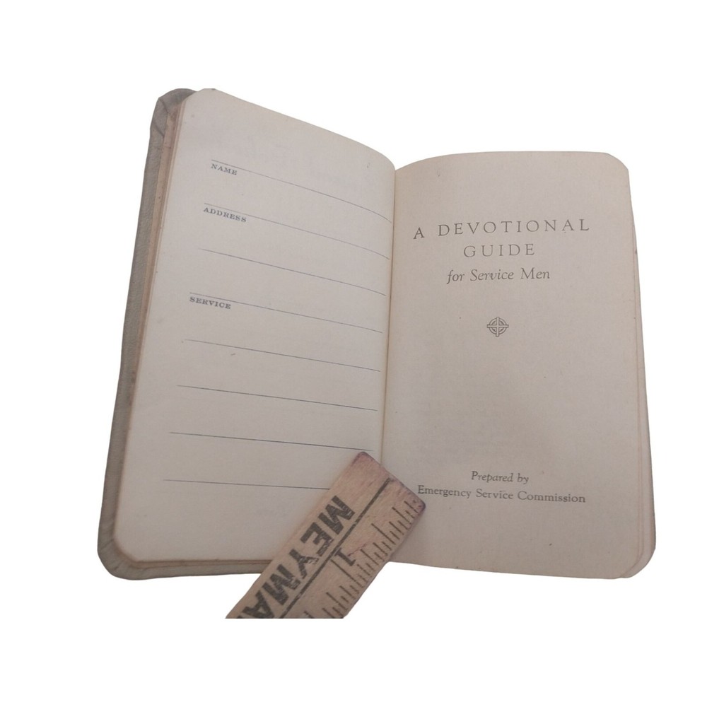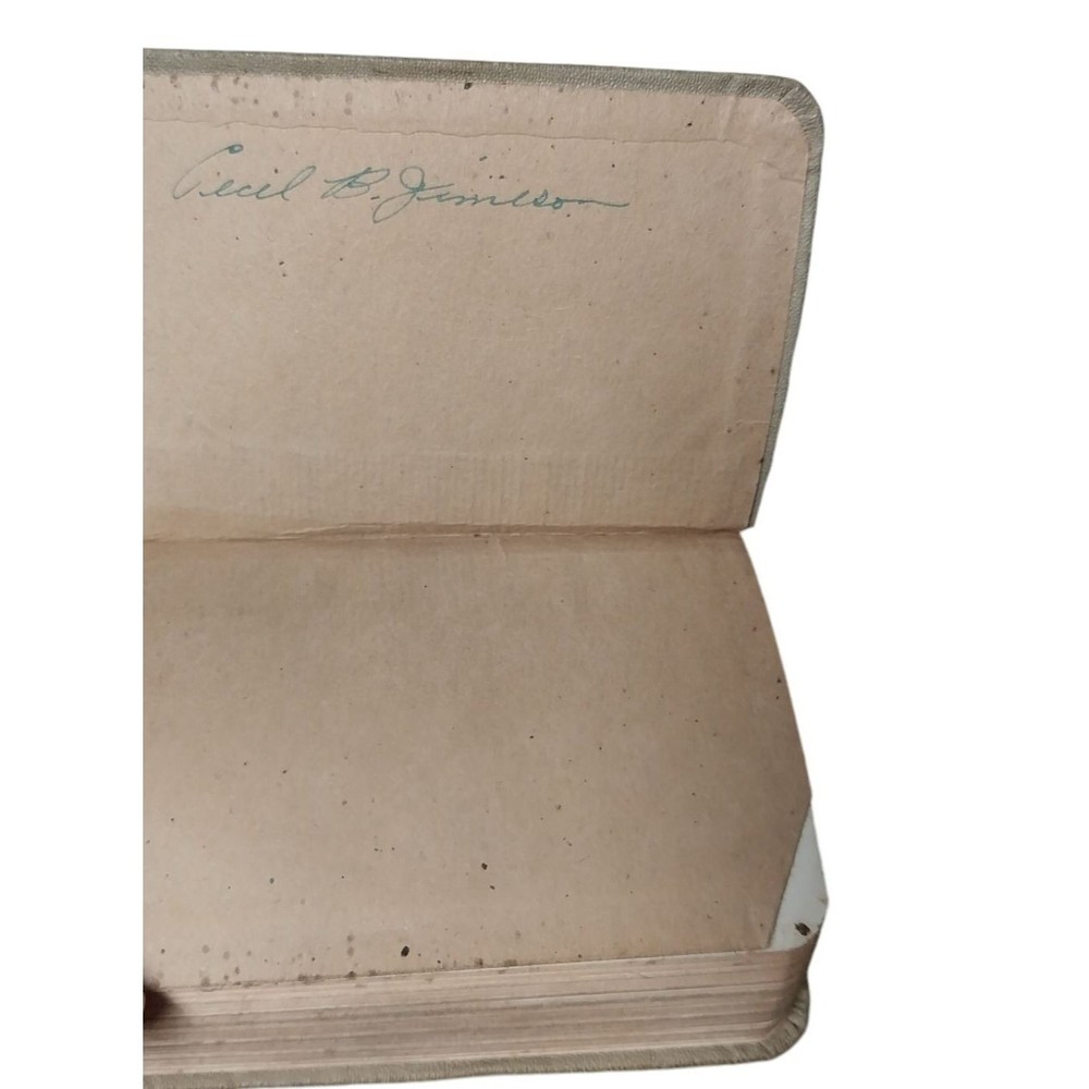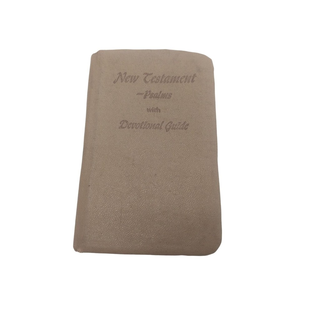 • Leatherbound cover • New Testament text • Devotional guide included • Compact size Cover shows signs of wear, pages slightly yellowed, writing on inside of front and back covers Measurements: 5.75 inches x 3.75 inches Condition: Pre-Owned Fair