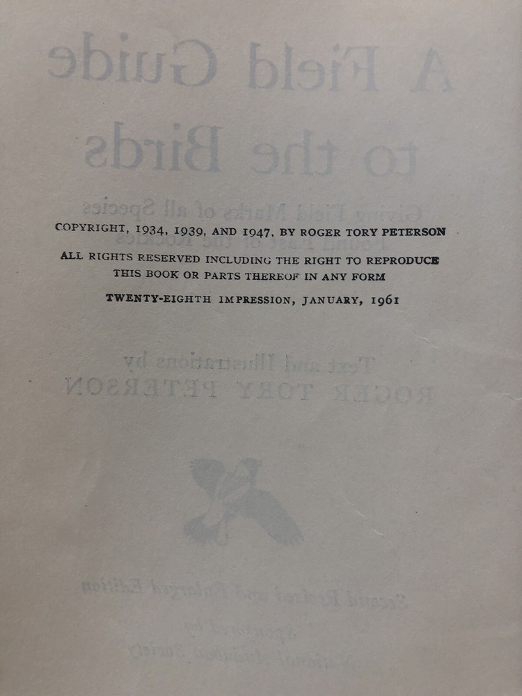 A Field Guide To The Birds by Roger Tory Peterson 1961.