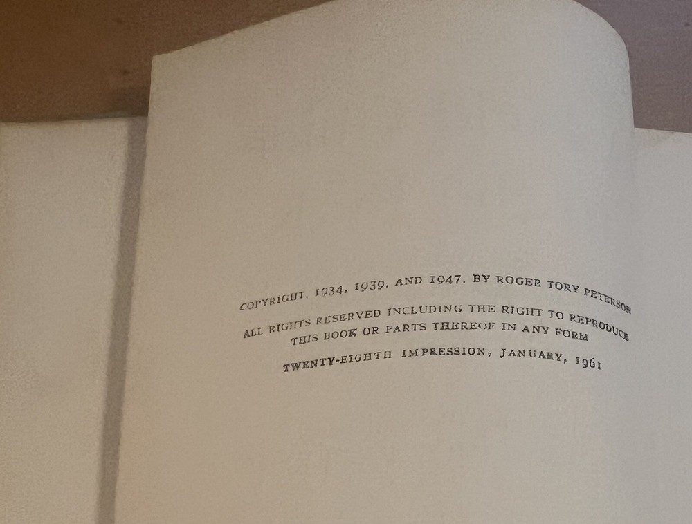 A Field Guide To The Birds by Roger Tory Peterson 1961. In good preowned condition. Binding intact but loose as seen in photos....