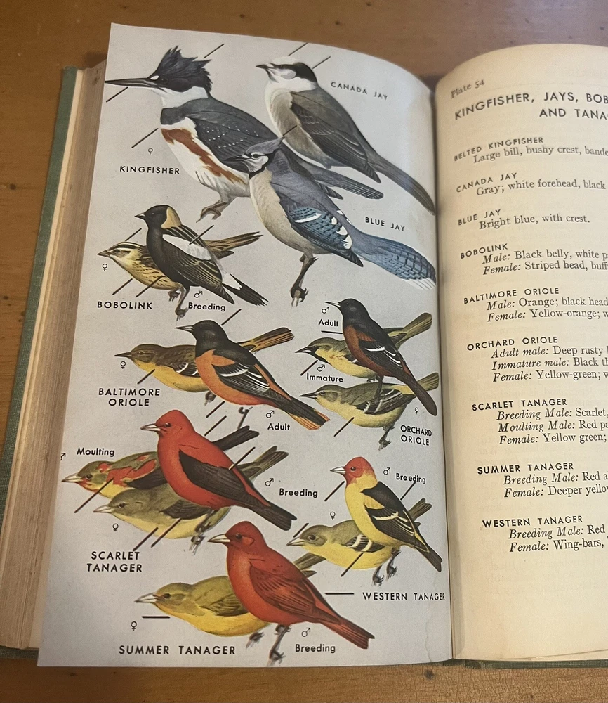 A Field Guide To The Birds by Roger Tory Peterson 1961. In good preowned condition. Binding intact but loose as seen in photos.