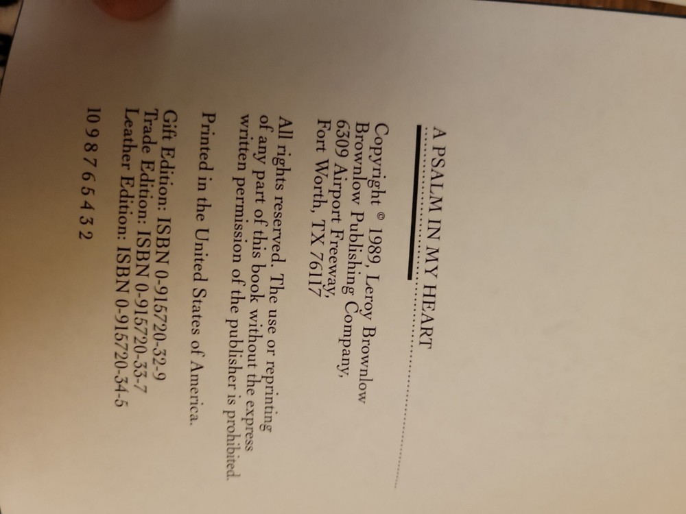 A Psalm In My Heart Daily Devotional by Leroy Brownlow Genuine Bonded Leather....