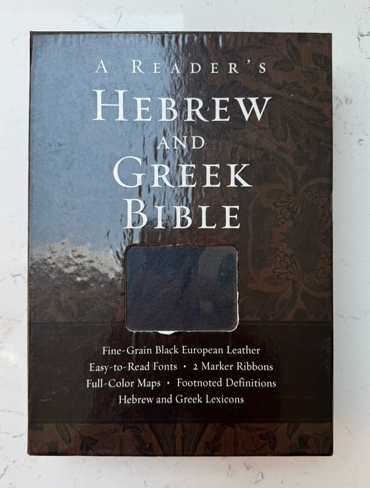 "A Reader's Hebrew and Greek Bible" by A. Philip Brown II, Bryan W. Smith, and Richard J. Goodrich is a comprehensive textbook published by Zondervan in 2010. This leather-bound Bible features English translations of the Hebrew and Greek texts, making it accessible to adult education students and those interested in language study. With over 2200 pages, this Bible is designed for deeper understanding and exploration of the scriptures, making it a valuable resource for individuals looking to enhance their knowledge of biblical languages and translations.