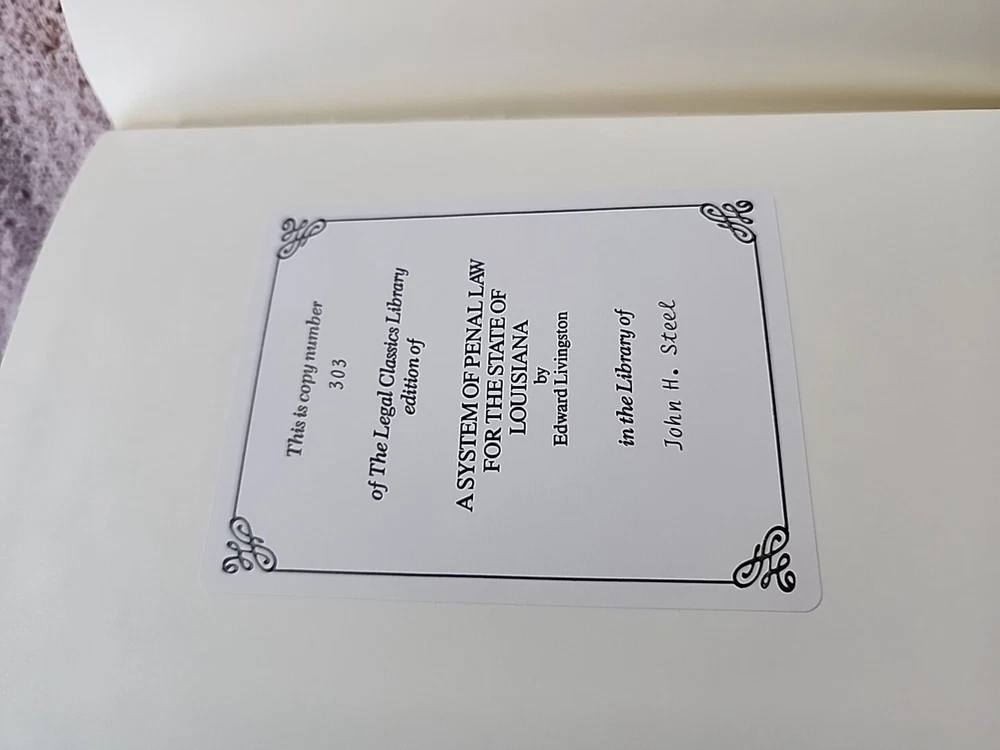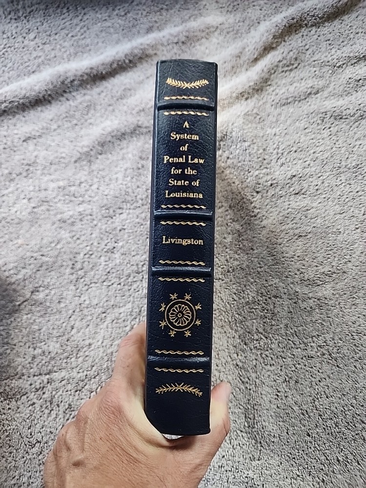 This is a special edition hardcover book titled "A System of Penal Law for State of Louisiana" written by Edward Livingston. It is part of the Legal Classics Library series and was published in 1991. The book is in English and has been classified as a nonfiction narrative type. It covers classicism in the law genre and has features such as leather binding. The book is perfect for those interested in the study of law and the history of Louisiana's penal system.