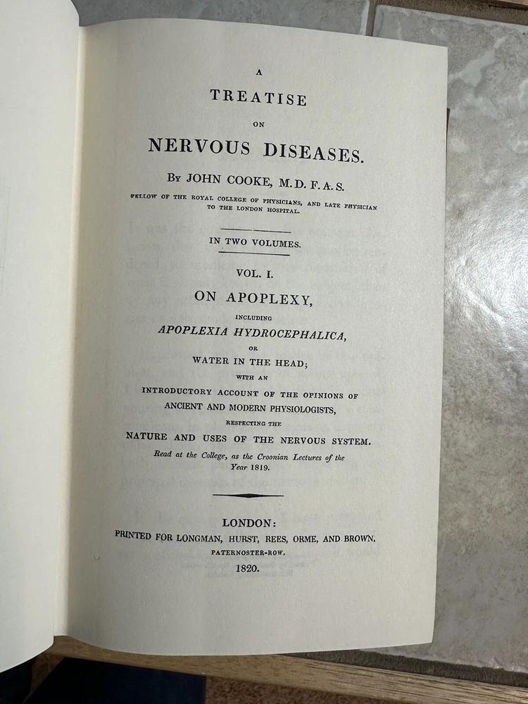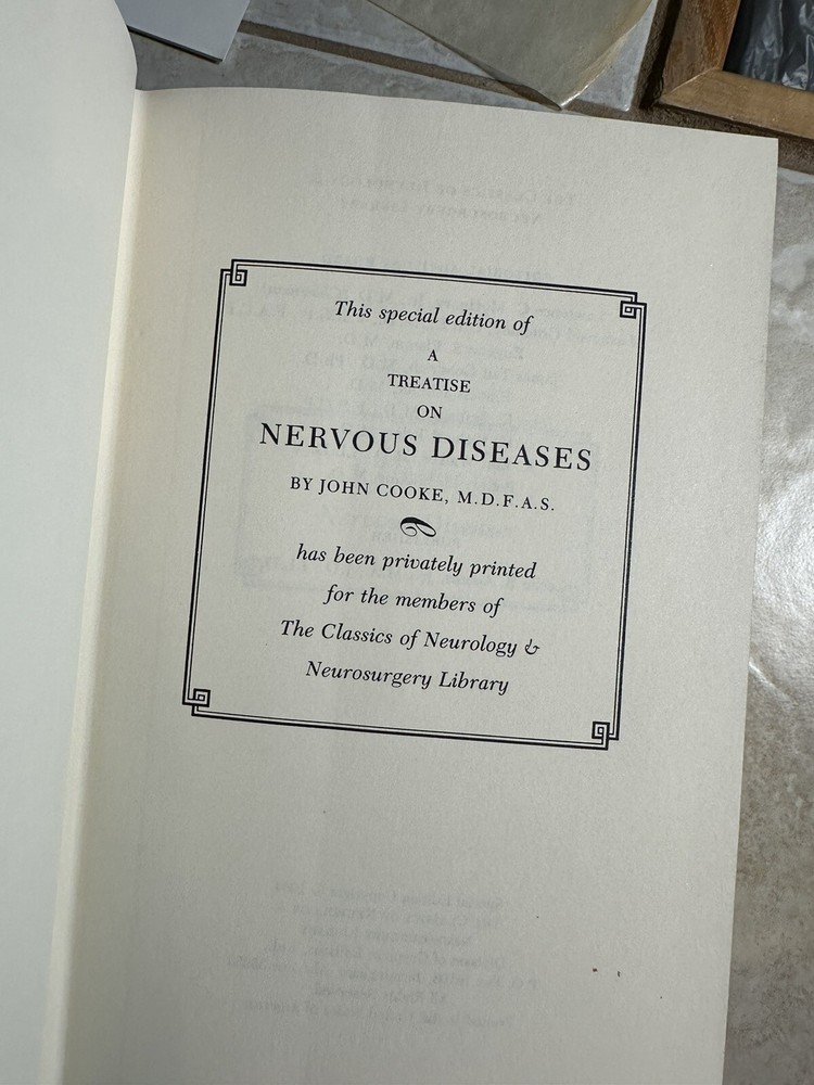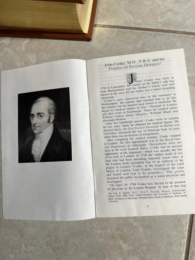 A Treatise on Nervous Diseases by John Cooke (1756-1838). Edited by Lawrence C. McHenry Jr. & Advisory Board. Limited Edition - #908 of 1000. In Like New Condition. Beautiful sprayed gold gilt to pages, with little to no wear, and no writings or markings. Please see photos. From a non-smoking home. Plus: The wonderful smell of new leather!