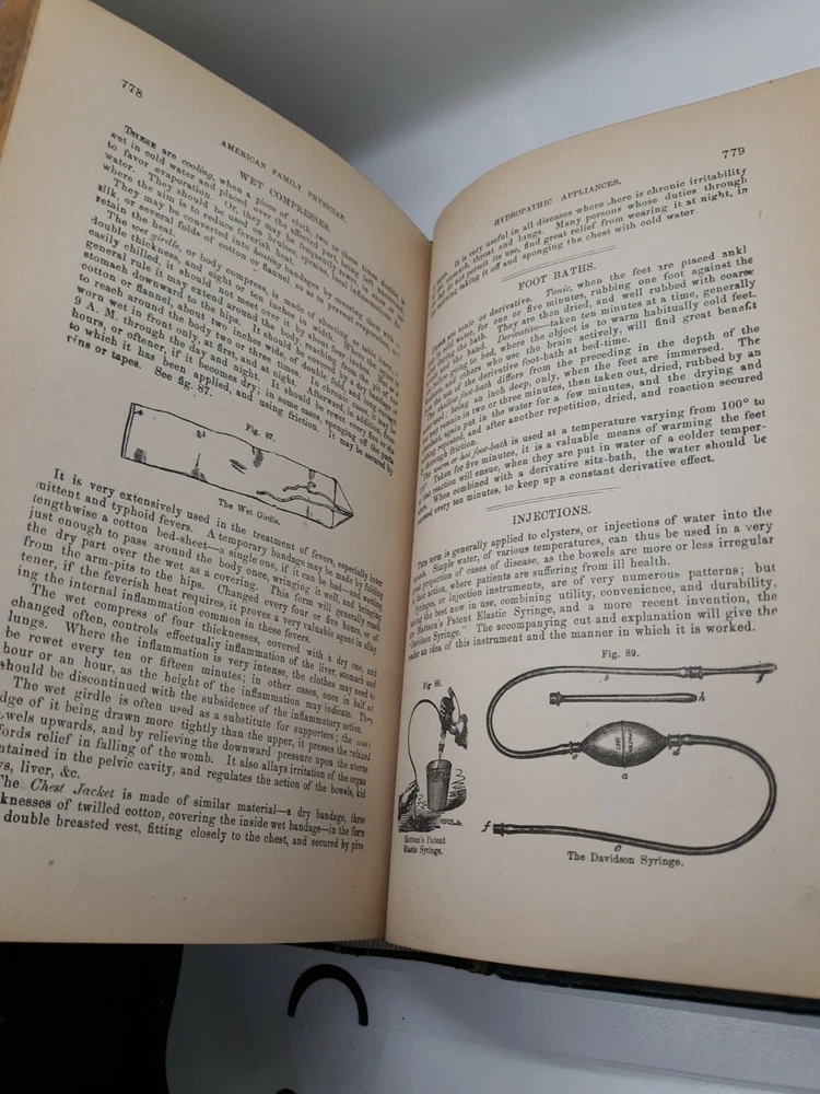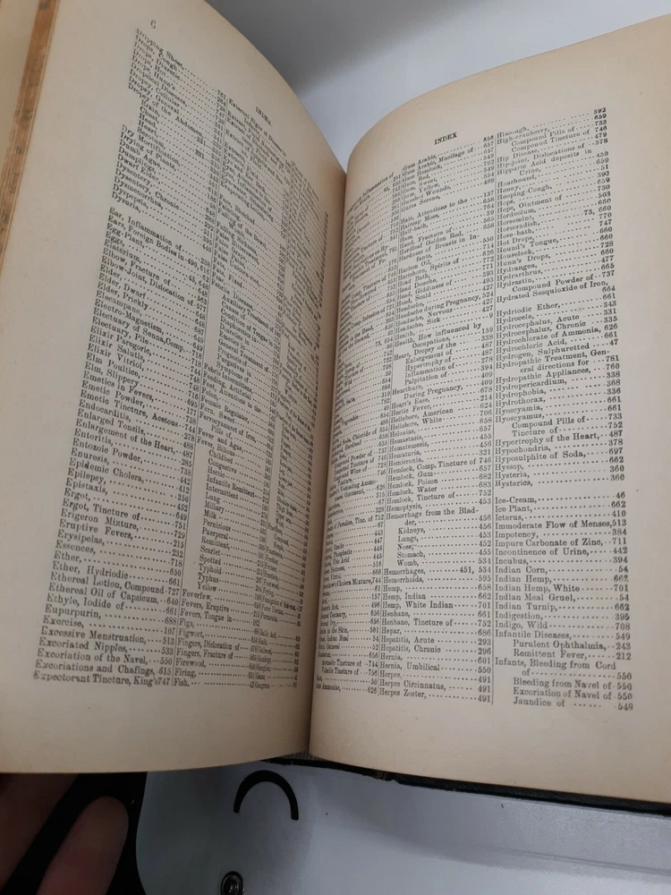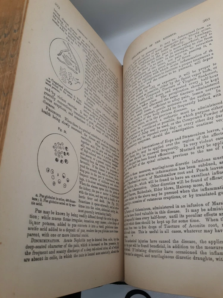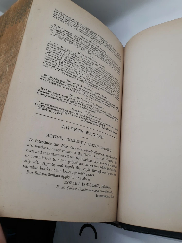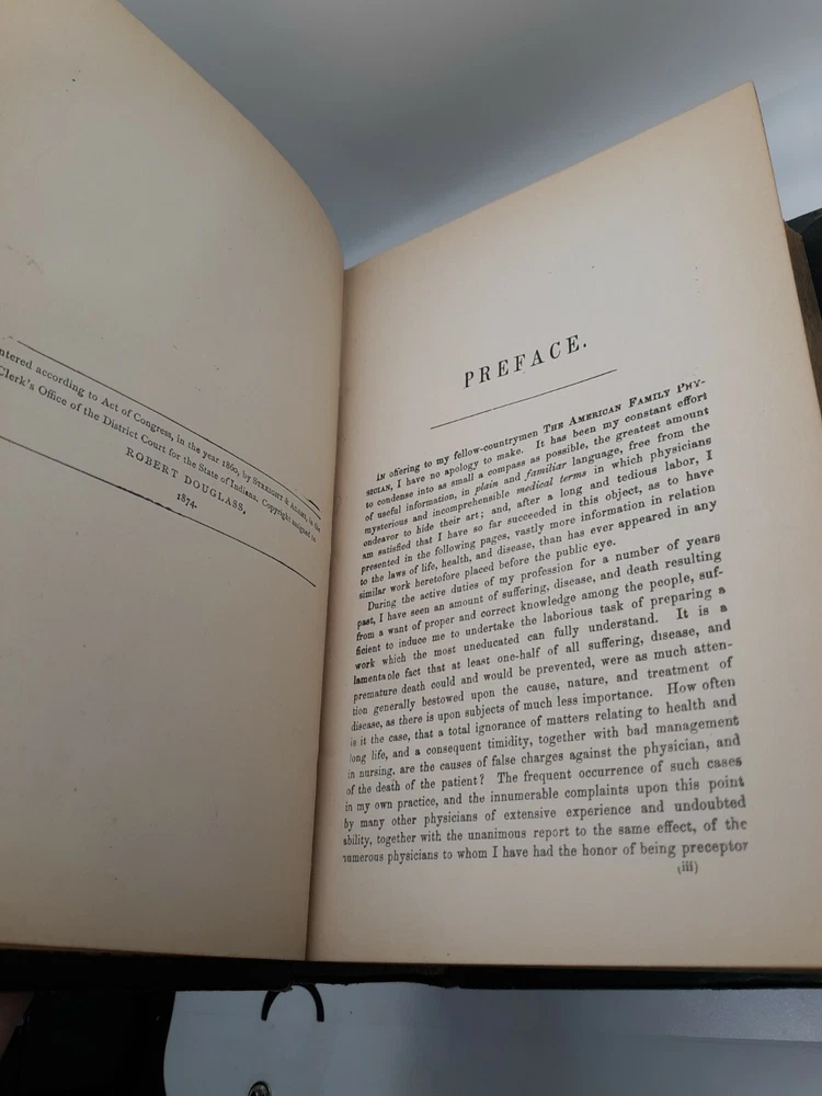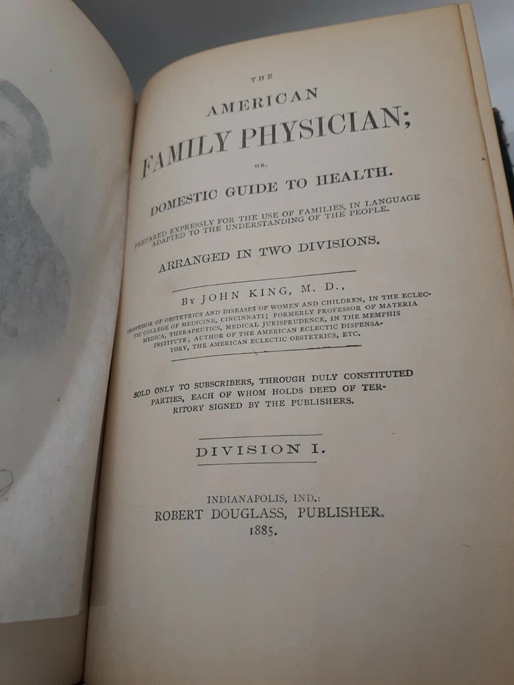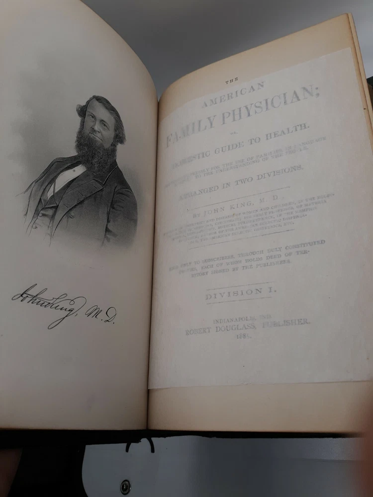 PLEASE review photos for condition. This 1885 American Family Physician book is a great addition to any collection of old books. This antique book was published by Robert Douglass in Indianapolis, United States and is an original copy. The book is written in English by John King and covers topics related to medicine and science. It is a great guide to health and provides valuable insights into the field of medicine. The book is bound in leather and is an excellent example of the craftsmanship of that time. The book is divided into two sections which cover various aspects of medicine. This is a must-have book for anyone interested in the history of medicine.