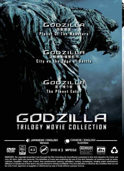 Title: ANIME DVD- GODZILLA TRILOGY MOVIE COLLECTION Number of Episodes: 1.Godzilla Part 1 Planet of the Monsters 2.Godzilla Part 2 City on the Edge of Battle 3.Godzilla Part 3 The Planet Eater Language/Version JAPANESE/ ENGLISH Subtitle: ENGLISH Format: DVD- All Region Free/Worldwide Number of Disc: 3 DVDs 100% Brand New & Factory Sealed Ready Stock All DVDs purchased will packed with Bubble Wrap (FOC), to prevent your item(s) from damage. Contact: If you have any questions or requests, please feel free to contact me. I will reply to you as soon as possible. Thank you. Payment: • We accept PAYPAL only. • PayPal is safe and easy Feedback: Please provide the positive feedback and good detailed seller rating after you received our package and satisfied with it. If for any reason, you are not satisfied with your order or the service you received, please feel free to contact me first, before leaving any negative FEEDBACK.The problem will resolve the issue and gain your customer satisfaction. Shipping : The order will be shipped to buyer address was given on PayPal .We Ship to worldwide by DHL Standard International Shipping Service or Registered AirMail with Tracking Numbers. All parcel will send out from Malaysia in next working days after Full payment received. Return Policy - Only DEFECTIVE item will be replace promptly. - Buyer's pay for the return shipping cost.