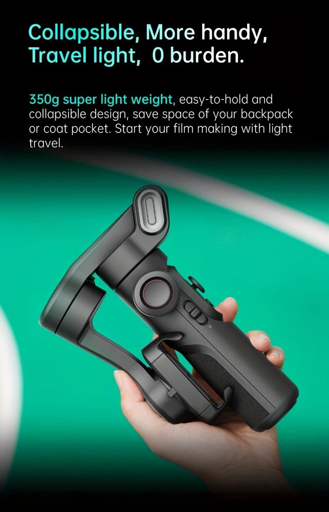 This stabilizer is a game-changer for smooth, professional-quality videos! Lightweight yet sturdy, it folds easily for travel and keeps my phone steady even during fast movements. The 3-axis motor eliminates shaky footage, and the simple controls make it perfect for beginners and pros alike. Battery life is impressive, and it works flawlessly with my iPhone. Highly recommend for vloggers and content creators!
