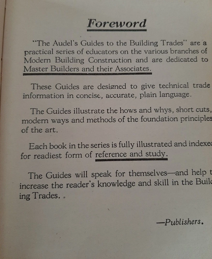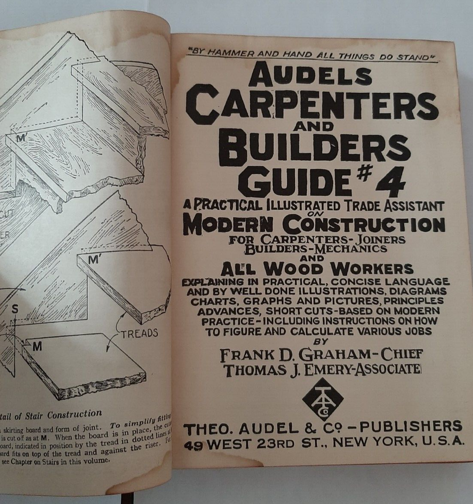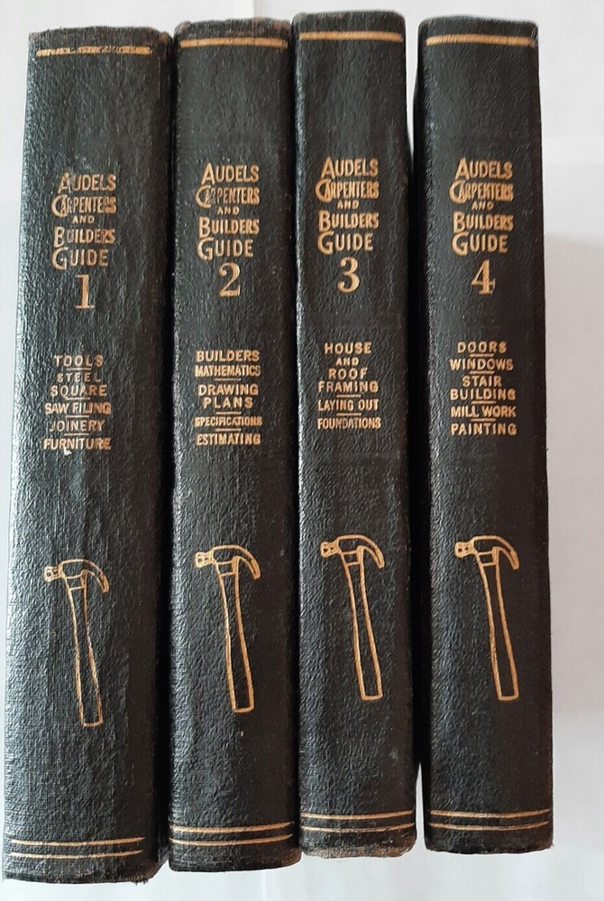 LISTED AUDELS CARPENTERS AND BUILDER GUIDE 1-4 IN GOOD SOLID CONDITION REPRINTED 1947/48 VOLUME FOUR HAS SOME STAINS TO PAGES SEE PICTURES...