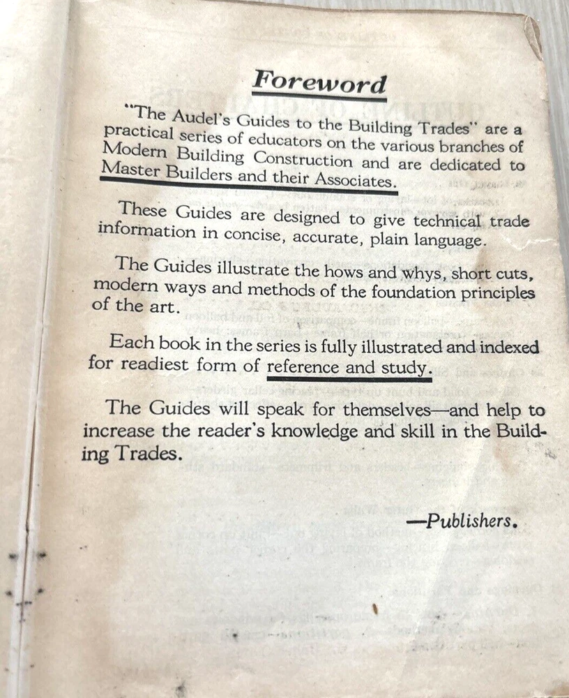 AUDELS CARPENTERS & BUILDING GUIDE # 3 BY FRANK GRAHAM & THOMAS EMERY ILLUSTRATED SOFT LEATHER COVER GOLD EDGED PAGES TAPED WATER MARKS...