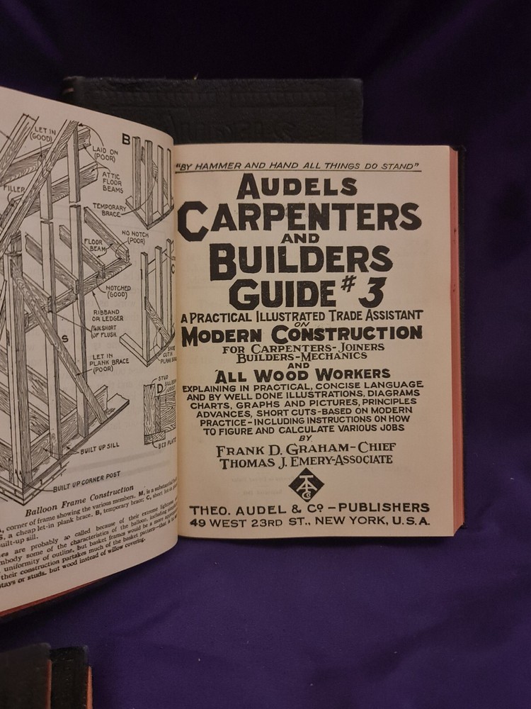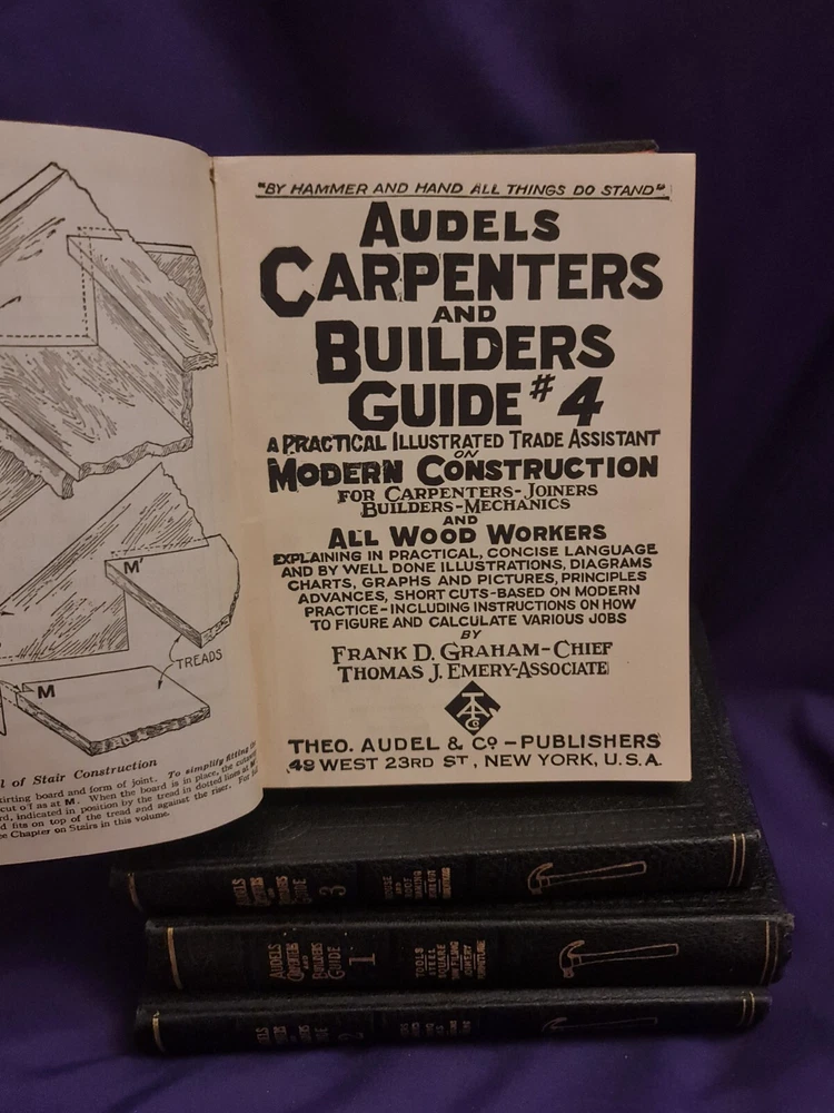 AUDELS CARPENTERS And BUILDERS GUIDE Complete Set Vols, 1-4 : 1949 Edition ***Note: Please check pics showing the item condition. As this is a vintage book, some signs of wear, foxing (discoloration), aging, and inscriptions by original owner/s’ (which may or may not be present). Please feel free to reach out for more pics or info if needed. Thanks. This is a complete set of the AUDELS CARPENTERS And BUILDERS GUIDE, written by Frank D Grahm - Chief. The guide is a collector's edition and features illustrations on building construction. The set includes volumes 1-4, printed in 1949 by Theo. Audel & Co. in New York. The books are in their original form and are a valuable addition to any collection. —————- **PLEASE NOTE*** I'm not a collector or expert so please see all photos for condition and let me know if you have any questions or need any more photographs. Due to the reason of light and the display, you can see the picture may have a slight color difference problem, this is inevitable, please understand. Please review images to make your judgment on cosmetic condition which I believe is a matter of personal opinion. You will get what you see. Please keep in mind that the majority of the items in my store are used, vintage or antique. I try to list every item accurately and to the best of my ability including any damage that I may find. There may be surface wear, scuffing or minor things to items that would come with normal use so if there is something specific you are concerned about please ask. If you see a mistake or flaw in my listing PLEASE let me know! I try to research each item and now and then I get it wrong. I welcome input and will make changes when I can verify your input. I have an antique & vintage shop in San Diego close to downtown with a wide range of antiques, furniture, collectibles and other unique items. Open to the public by “appointment” usually starting in the afternoons every day. 1240 Sampson St., San Diego, 92113 SanDiegoantiqueandunique.co Please check our other listings. Thank you Please read our Terms and Conditions in full before bidding, placing an offer or buying an item. Buying from us you are agreeing to accept and abide by the terms and conditions set out below, if you purchase an item we will assume you have read this: Combined shipping: We do combine shipping on multiple purchases. A combined invoice will be sent on multiple purchases. Please do NOT pay for items before a combined invoice is sent, otherwise items cannot be combined. If buying large orders where it would be difficult to estimate combined shipping we will send a combined invoice and once payment is received we will pack and weigh the items and look to refund a portion of the shipping overages. International buyers: International buyers, we use the Ebay Global Shipping program. This means either you need to combine the items on your end for multiple items or pay for each of the items separately and when sent to Ebay’s Global Shipping center we will refund a portion of the shipping overages. We CANNOT combine shipping on our end and will not use any other form of shipping. We do not control import fees or taxes. If you are unable to agree to the above rules please refrain from bidding, making offers or purchasing . Please see Ebay’s official statement below. The Global Shipping Program already provides your buyer with an invoice for all applicable item, shipping, and import charges. Unfortunately, you can't edit these charges, even to offer a shipping discount. When your buyer pays, just ship the item to the US shipping center specified, and the Global Shipping Program will forward it to the buyer. Your buyer will directly pay you the purchase price of the item, plus any domestic shipping cost you specified in the listing. Item Description and Condition: Please see an item specifics for condition and details. We run over 3000 auctions at all times and descriptions may appear minimal but we are very happy to answer any questions you may have as long as you ask them BEFORE committing to buy the item or making offers. Do not ask questions within the offer. Items may differ slightly from the photo if they are part of a multiple listing or have been re-listed. If you are unsure of anything please ask BEORE buying. We do not answer questions after the item is paid for as the item will have already been sent to our shipping dept to be sent out. Item Packaging: We do not guarantee the condition of any packaging on any item. If an item is described as new it is the item inside the packaging we are describing not the packaging, new means the packaging has not been opened and the item inside is unused. If a package has dings, creases or crushed bubbles we will do our best to indicate as such, however, view the photos provided and any questions please ask BEFORE making an offer or purchase. Payment: We only accept payments through Ebay. Please pay within 2 days. Unpaid item reminders will be automatically sent after 2 days. If waiting for additional items to end, payment is expected within 5 days of the first ended item. Shipping: Items are usually shipped the day after payment with the exception of items paid on Fri/Sat/Sun which are then usually shipped Mon or Tue. A tracking number will be provided once we pack and look to ship the item. Returns: We do accept returns, please contact us as soon as possible stating the reason you wish to return the item. Apart from exceptional circumstances we do not pay for return postage or refund initial postage costs. Blocked Buyers: In some rare instances we need to block buyers from making offers or purchases. This could be for various reason such as non payment of previous items, multiple cancellations, insulting offers, difficult communications, or rude remarks to us or our staff. In these rare instances we will not allow purchases or offers and will not communicate with the buyer once blocked.