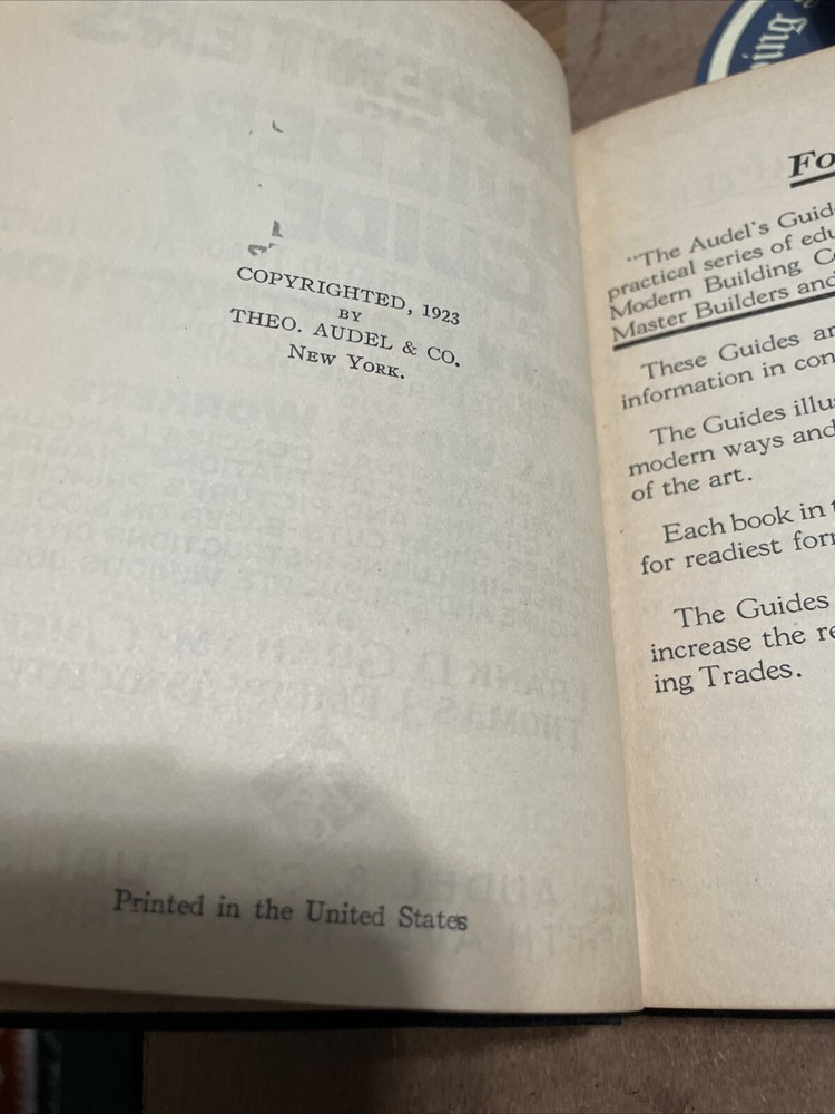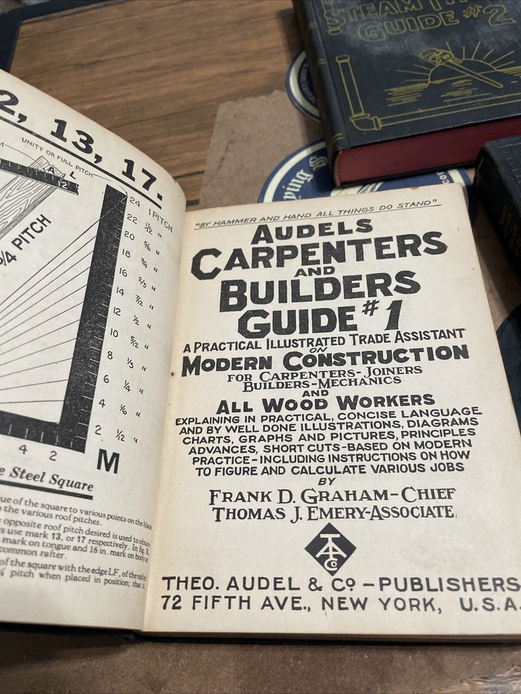 This antique book lot features a collection of rare and valuable titles published by Theo. AudeL & Co. Publishers in 1923. The books cover a range of topics including builders, joiners, carpenters, wood workers, and mechanics. The first edition copies are illustrated and written in English by Frank D. Graham. The books are bound in leather and were printed in New York, United States. This original collection is a must-have for collectors and enthusiasts of antique books. The lot includes titles such as "Audels Plumbers, Carpenters, and Builders Guide" and "Mechanics Guide". Don't miss the chance to own a piece of history with this amazing collection.