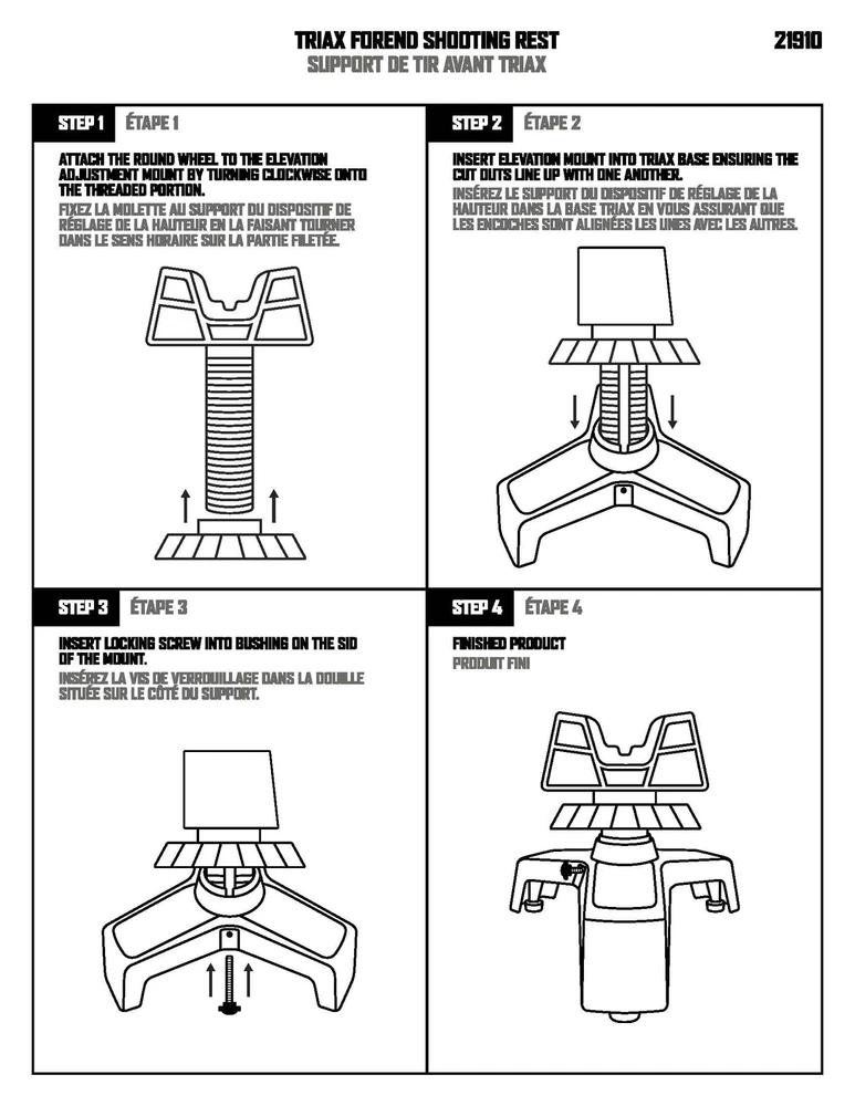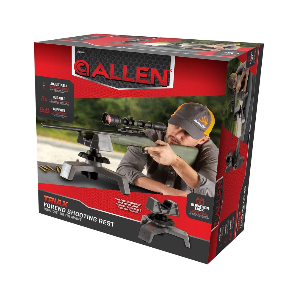Product details The Triax Forend Shooting Rest is a polymer forend shooting rest designed in a tripod shape for greater stability. Allen Company Triax Forend Shooting Rest Durable Polymer Tripod Base Fine Elevation Adjustment Screw Elevation locking screw Overmolded support head