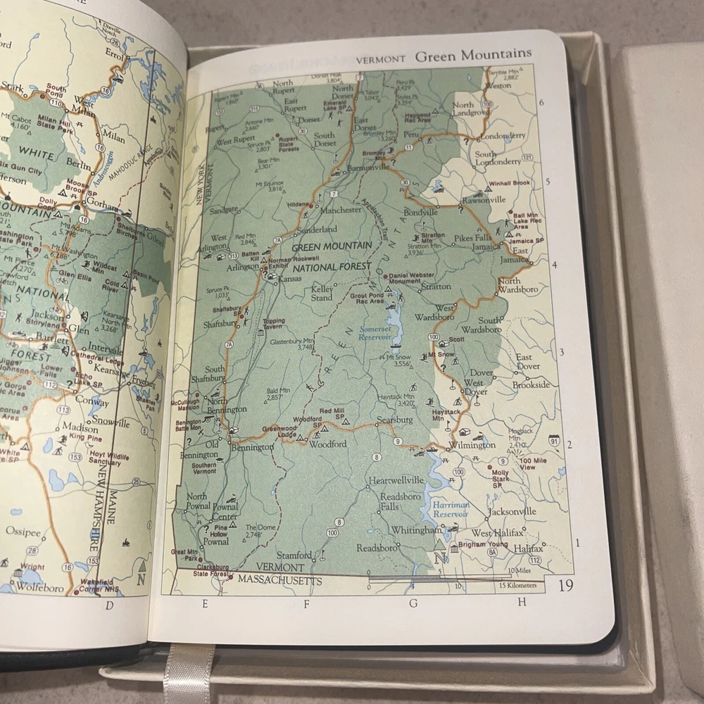 The product is a collector's edition almanac titled "America National Parks & Destinations Guide". It is published by Graphic Image in English and authored by Orvis and Graphic Image. The book is a leather-bound paperback with illustrated features and has a vintage feel. It was published in 2008 and has 320 pages. The book covers topics such as geography, travel, and history, with a focus on national parks and recreation. Mint in box