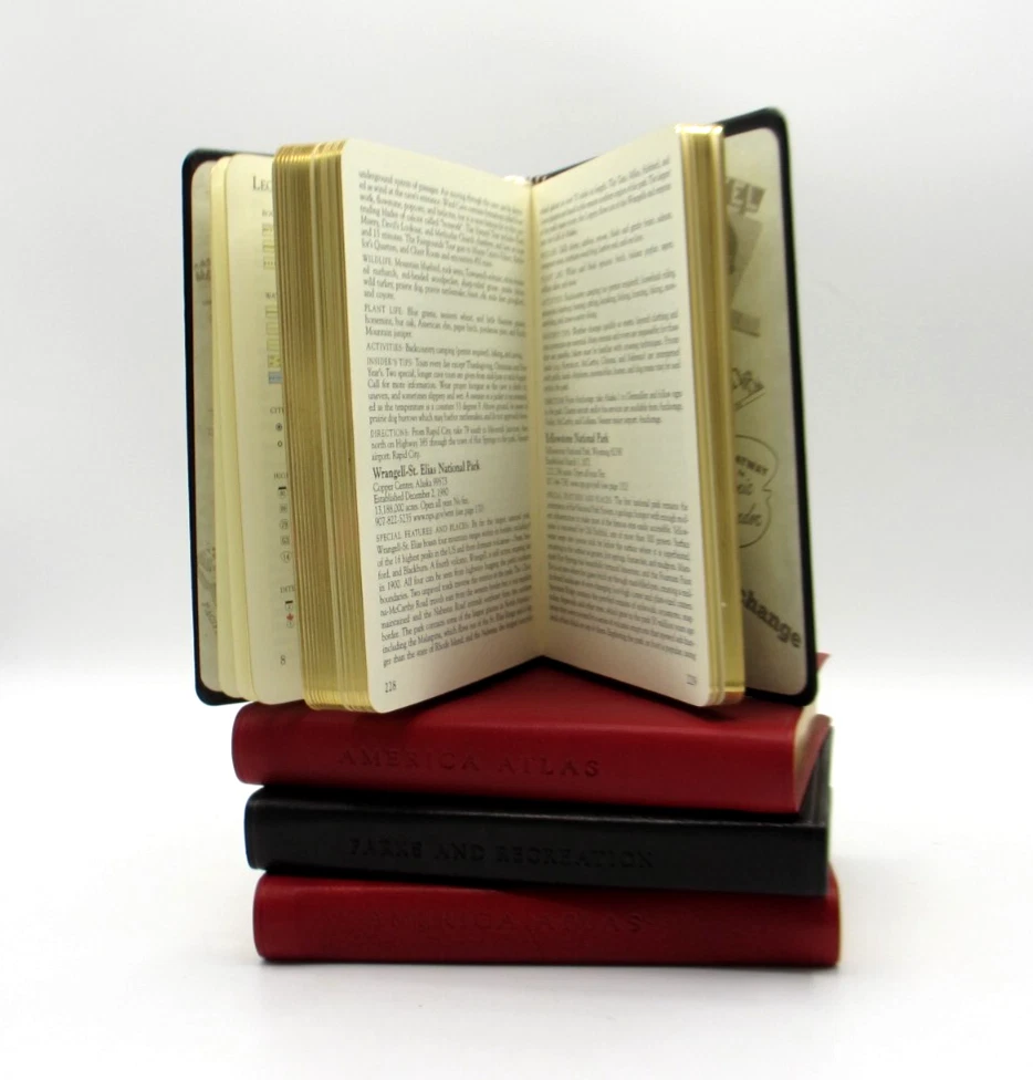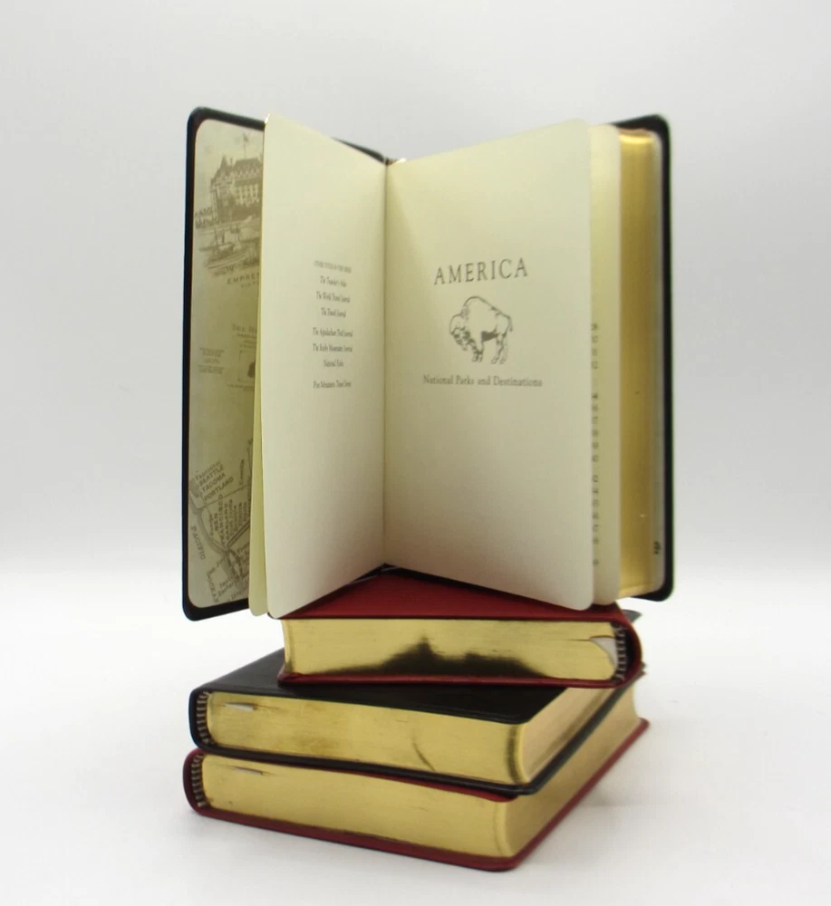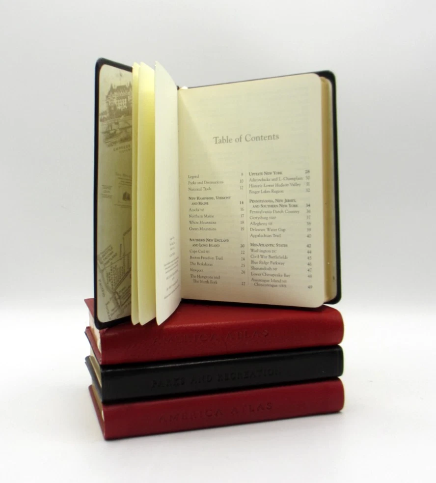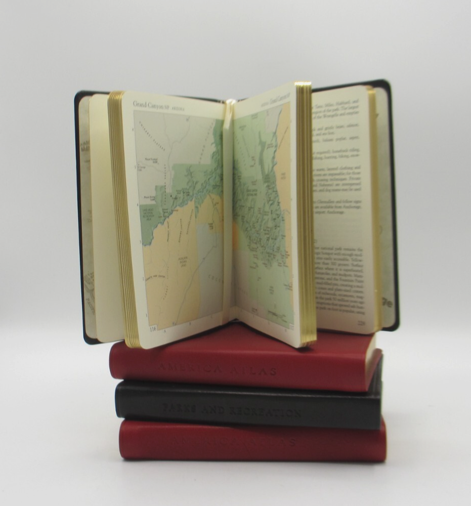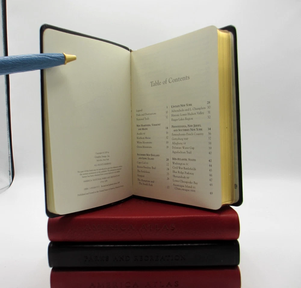 America: National Parks and Destinations Graphic Image published and bound in the United States Cover is bound in Calfskin leather An atlas focusing on leisure travel in the US, with an emphasis on national parks. Features historic sites and American cultural destinations. This includes scenic highways, recretional areas, and historical locations like Route 66, Civil War battlefields and Antebellum home regions. There is a map offering a regional specialty for every state in the nation. Cream-white, acid-free paper with gilt edges - Double-faced cream ribbon marker - S myth sewn for strength and longevity - 320 pages INCLUDES INFORMATION ON: - National Parks and Trails, State Parks, National Forests - Important recreation and resort areas - Historic sites and most visited places in America - Noted regional sites (vineyards, horse farms, battlefields) - Outdoor destinations (family amusement centers, natural wonders, golf & ski centers, hiking trails) - U.S. travel distances - U.S. weather - Toll-free telephone numbers MAP SECTION INCLUDES: - 160 pages of full-color maps - Continental map - Regional driving and site specific maps Retails was $65.00 If you’re buying multiple items from us, we are happy to ship everything to you in the same package. eBay will automatically combine the shipping costs. Simply add your items to your shopping cart, and eBay will adjust the shipping cost at checkout.