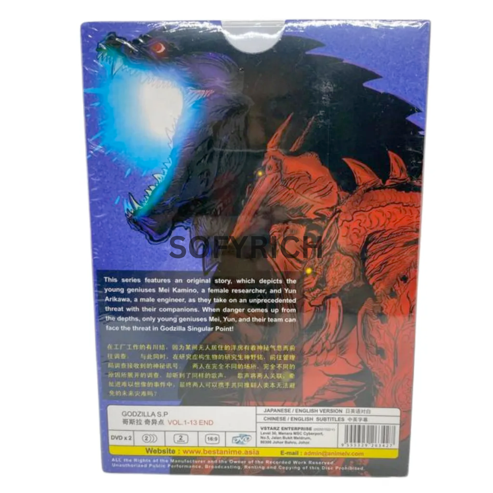 Created with Eselt - eBay Listing Designs Sofyrich Give us a call Send us a message Created with Eselt - eBay Listing Designs Our Store Seller Profile Feedback About us Contact Created with Eselt - eBay Listing Designs Anime DVD GODZILLA SP DVD JAPAN /ENGLISH Version, Vol 1-13 End GODZILLA S.P VOL.1-13 END DVD No of Disc : 2 Disc Version : Japanese / English Subtitles : Chinese / English This series features an original story, which depicts the young geniuses Mei Kamino, a female researcher, and Yun Arikawa, a male engineer, as they take on an unprecedented threat with their companions. When danger comes up from the depths, only young geniuses Mei, Yun, and their team can face the threat in Godzilla Singular Point! Created with Eselt - eBay Listing Designs Payment Currently we accept payments through eBay-managed payment. Shipping We are using standard shipping from the USA. Handling time is 1-3 working days . Your goods will be shipped with a valid tracking number .All products are packed, and layered with bubble wrap to reduced damages during shipment delivery .Estimate delivery is between 4 to 7 business days. Returns If you have any problems with the order , please contact us via eBay message. We are glad to assist you and resolve the issue as soon as possible. Items can be returned within 30 days in good condition. Other Note : Import duties , taxes and additional charges are not included in the item price or shipping charges, please be aware that custom import duties and taxes are the buyer's responsibility. Created with Eselt - eBay Listing Designs Links Our Store Seller Profile Feedback About us Contact More items Are you looking for something similar? See our other items! Show more items Contact Give us a call Send us a message