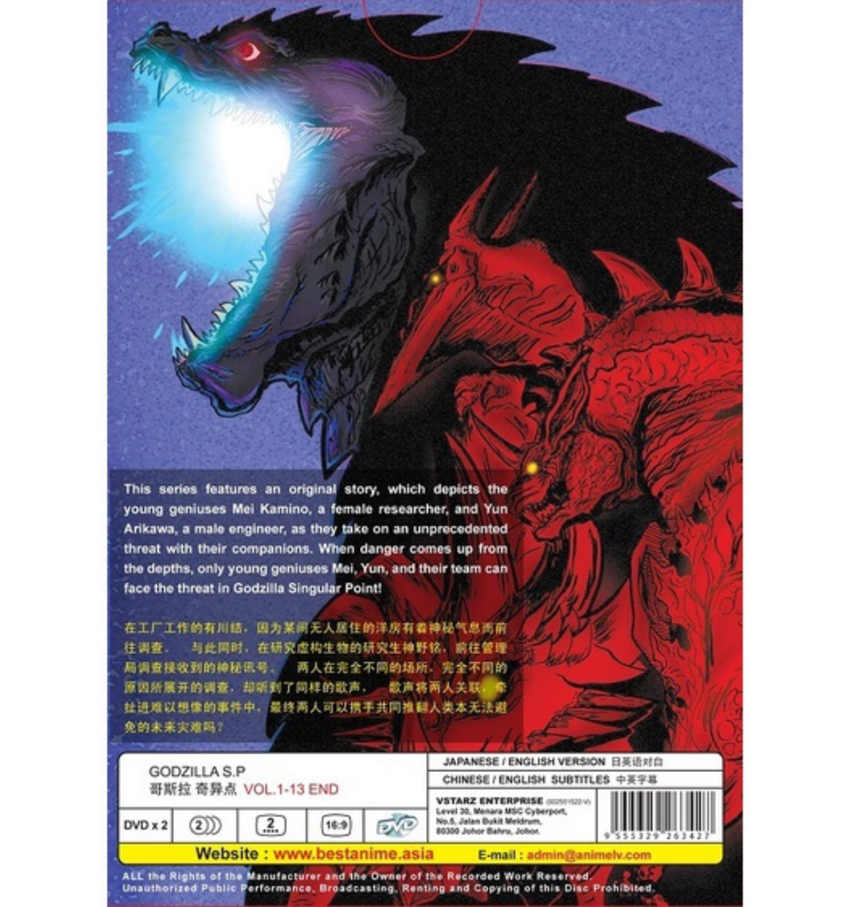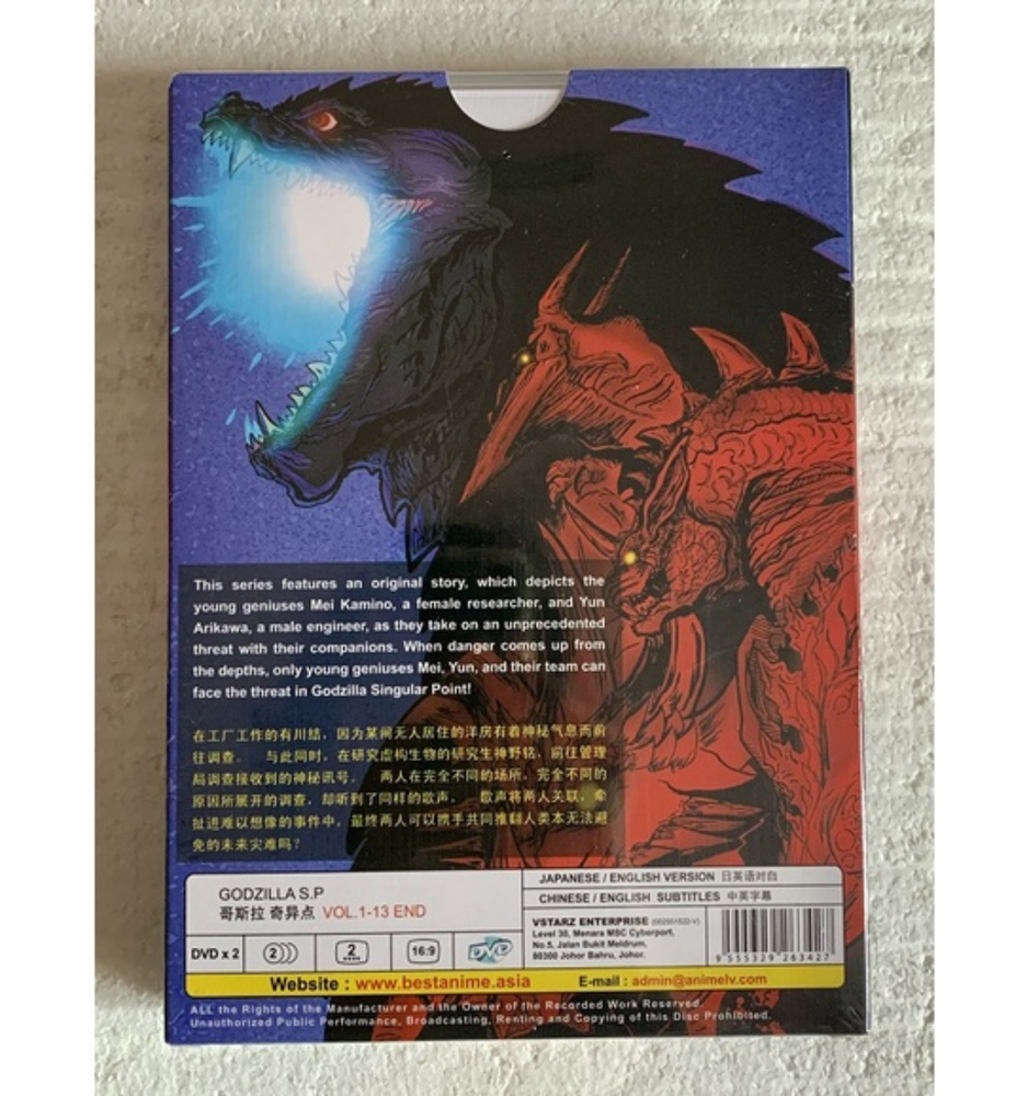 Created with Eselt - Mobile Optimized Listing Designs for eBay Sellers Give us a call Send us a message Created with Eselt - Mobile Optimized Listing Designs for eBay Sellers Created with Eselt - Mobile Optimized Listing Designs for eBay Sellers English Dub Version Godzilla S.P: Singular Point Anime DVD(1-13 END) All Region Description Payment Shipping Returns Other Item Description: Number of Episode : 1 - 13(END) Number of Disc : 2 Language : Japanese / English Subtitle : English / Chinese Condition : NEW, Original & Licensed Item Disc Format : NTSC Format Region Code : All Region/Region FREE "0" Payment We only accept payment by Payoneer due to new payment method by eBay Payment must be received within 3 business days Please check your SPAM folder, if you don’t receive the email from us or eBay Kindly message through eBay message if you faced a problem. It’s the fastest way. Shipping All items are based in USA. Item will be shipped to your eBay shipping address. Please message us or send a note in your payment if you wish to ship the item to a different address. Address could not be changed after the tracking number are out. We will ship your parcel using DHL ecommerce, Fedex Ground, USPS First Class, UPS Mail Innovation. We will ship your order within 1 - 3 business days. USA delivery shall be within 3 to 9 days with tracking number. Returns We offer 30 days money back/refund for the item(s) if you are not satisfied. We only accept the item that want to be return must be in minimum/unopened condition. Shipping fees paid for delivery of the item to buyer are non refundable and would be deducted from the amount to be refunded to buyer. Please email or message us before shipping. Other Please don't leave negative feedback. We always resolve customers problems and doubts. Contact us first through email or just message us. We will leave feedback for you once we received feedback from you. We strife to serve you the best we can. Any comments or feedback directly to us is most welcomed. Created with Eselt - Mobile Optimized Listing Designs for eBay Sellers Contact Give us a call Send us a message