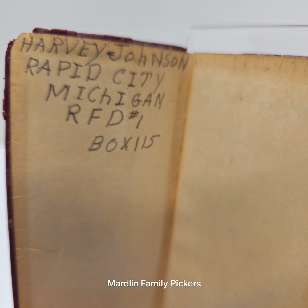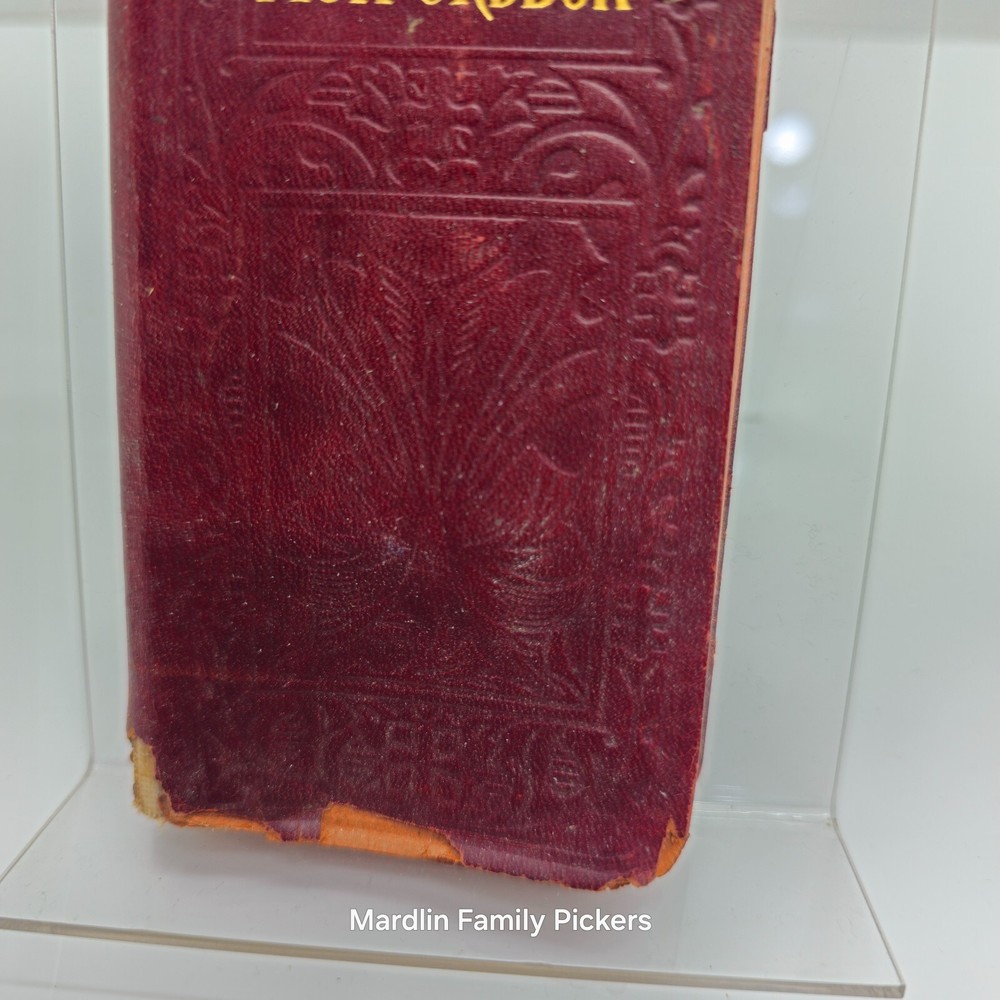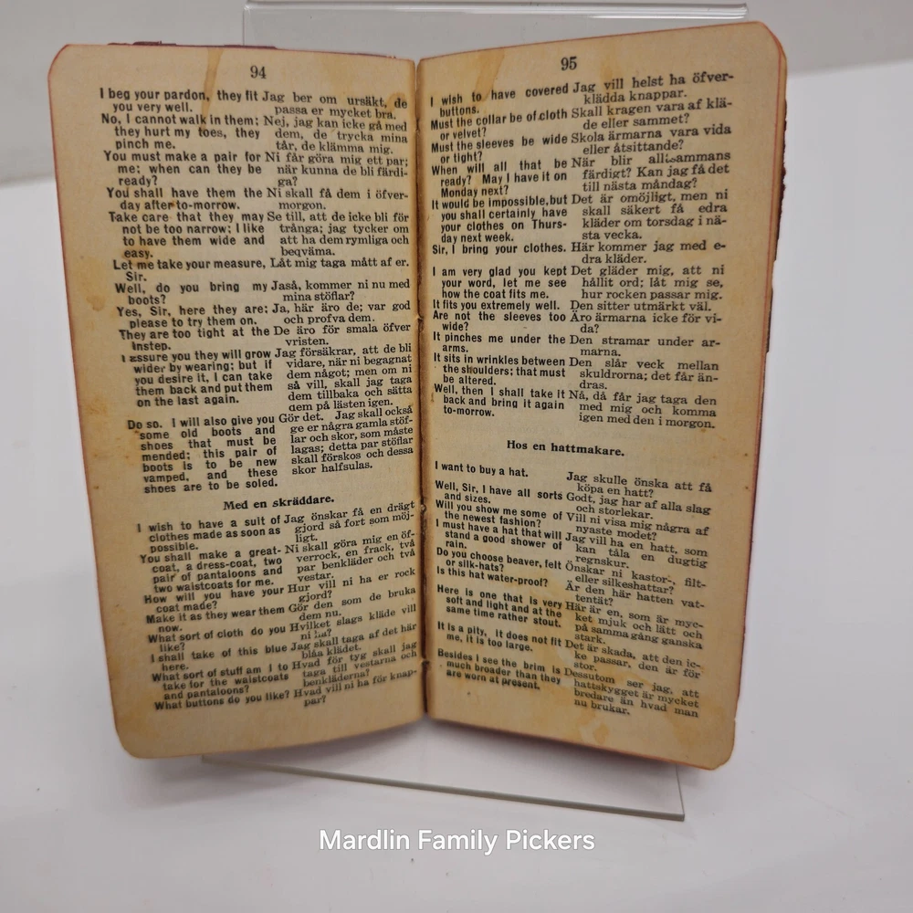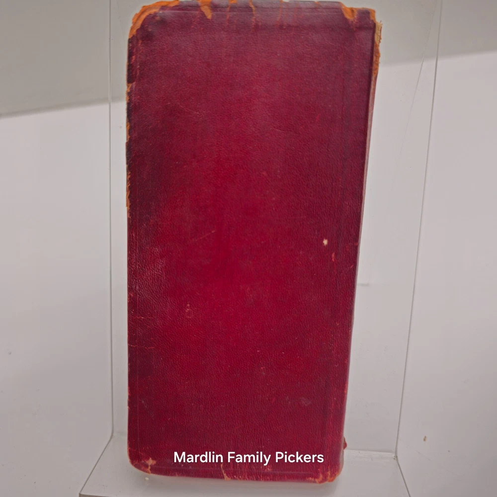 This is an antique 1901 edition of Löfströms Svensk-Engelsk och Engelsk-Svensk Fick-Ordbok (Swedish-English and English-Swedish Pocket Dictionary), copyright by W. E. Scull. Condition: Antique used condition. The embossed red cover shows significant wear, rubbing, fraying, and loss, particularly at corners and spine ends. Gilt title on cover is partially visible. Gilt page edges are worn. Contains a pencil ownership inscription from Harvey Johnson of Rapid City, Michigan, on a front flyleaf. Interior pages are tanned. The binding is worn. Item Details: Title: Löfströms Svensk-Engelsk och Engelsk-Svensk Fick-Ordbok Copyright: W. E. Scull Year: 1901 Language: Swedish-English / English-Swedish Type: Pocket Dictionary Binding: Embossed Flexible/Semi-Flexible Hardcover Visit the Mardlin Family Pickers store for unique finds! We ship orders the next day (Our Shipping Days: M, W T F S, excluding holidays).