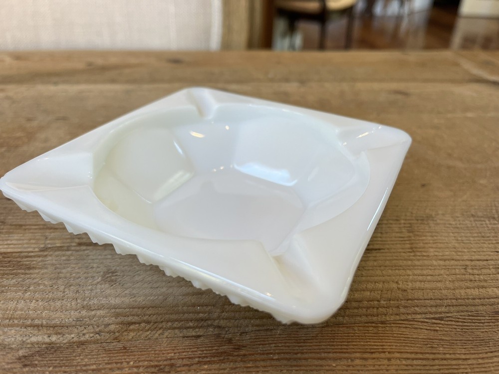 Antique 1950s Westmoreland Milk Glass Hobnail Square Ashtray 4 1/2”. Condition is Used. Shipped with USPS Ground Advantage.