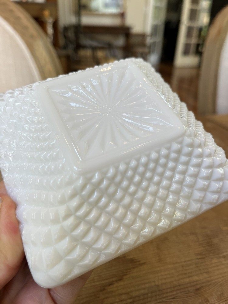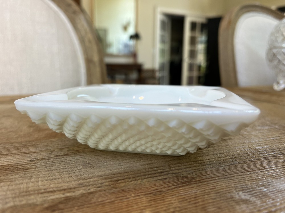 Antique 1950s Westmoreland Milk Glass Hobnail Square Ashtray 4 1/2”. Condition is Used. Shipped with USPS Ground Advantage....