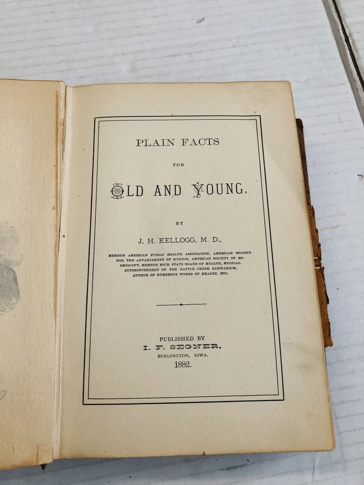 Antique Book Plain Facts For Young And Old First Edition 1882 Signed By Author. Condition is "Acceptable". Shipped with USPS Media Mail. What we have here is a First Edition 1882 book written and signed by the author J. H. Kellogg. The same Kellogg that co invented Kellogg breakfast cereals. Mr. Kellogg was a doctor, author and inventor. As you can see the the cover is in serous need for repair. The inside pages are in good condition.