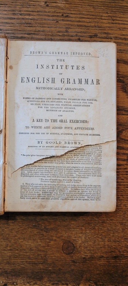 This antique book is a true gem for collectors and enthusiasts alike. The soft brown leather-bound cover and stitched binding adds to the charm of this original 1863 edition of Goold Brown's Grammar Improved. The text book, written in English, is authored by Goold Brown and published by William Wood. It covers the subject of English language and is a must-have for those interested in language and literature. This book is a rare find for any book lover.