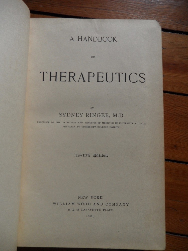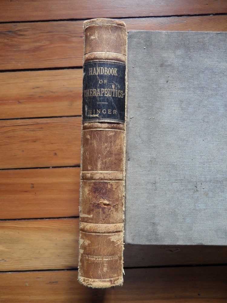 Rare Antique Handbook of Therapeutics Sydney Ringer, MD Leather Bound Cover Book Twelfth Edition New York William Wood and CO 56 & 58 LAFAYETTE PLACE 1889 524 pages The book measures 9 1/4 " X 6" X 1 3/4 ". Overall Good Antique Condition. The leather hard cover shows visible wear, scratches, markings and is missing a corner. The inside pages show slight age in color but the pages are still in very good condition. If you have any further questions, please ask. Thanks for looking. $FREE USPS Priority Mail in the US & $58.95 Worldwide Shipping.