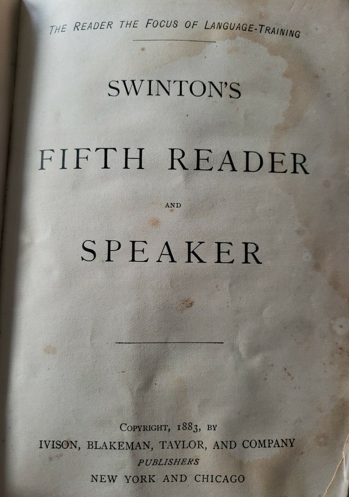 Antique Swinton's Fifth Year Reader 1883 with Stories, Poems, Pictures Acceptable...