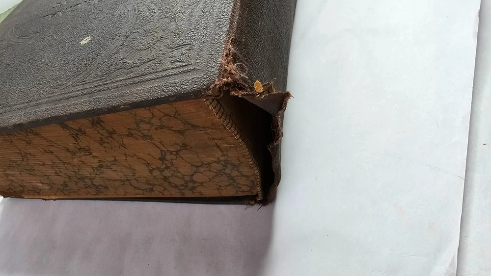 Book is pre-owned and does have wear. It is beginning to come apart at the seam and may be missing a page(s). The leather over is also beginning to crumble at the edges. Please see photos...