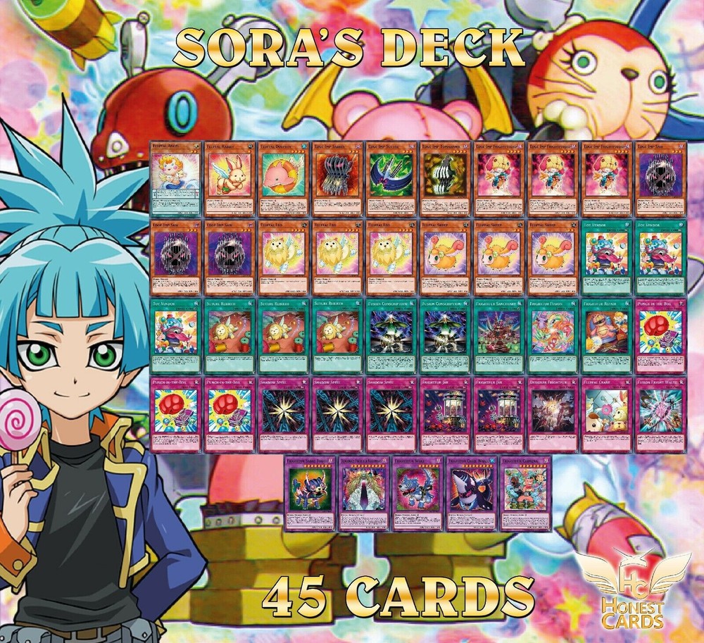 Hello all I am a New Ebay Seller!!! I am a Female Yugioh & Magic Collector!!! Happy Bidding!!! A bonus for ordering you will also Get a Free Holo Card from my collection. It maybe Super Rare, Ultra Rare, or SECRET Rare!!! Picture may have been edited due to Inventory Changes Please read description Below Item for sale is: Complete 45 Card Sora Perse's Deck 23 Monsters: 1x Frightfur Sabre-Tooth (Super Rare) 1x Dangerous Frightfur Nightmary (Ultra Rare) 1x Frightfur Chimera (Rare) 2x Frightfur Cruel Whale 1x Fluffal Angel (Super Rare) 3x Edge Imp Frightfuloid 3x Edge Imp Saw 3x Fluffal Leo 3x Fluffal Sheep 2x Edge Imp Scythe 1x Fluffal Rabbit 1x Fluffal Dolphin 1x Edge Imp Tomahawk 13 Spell Cards: 3x Suture Rebirth (Rare) 2x Fusion Subscription (Rare) 1x Frightfur Fusion (Rare) 3x Frightfur Repair 3x Toy Vendor 1x Frightfur Sanctuary 9 Trap Cards: 3x Fuhma Wave 3x Frightfur Jar 1x Designer Frightfur 1x Fluffal Crane 1x Fusion Fright Waltz