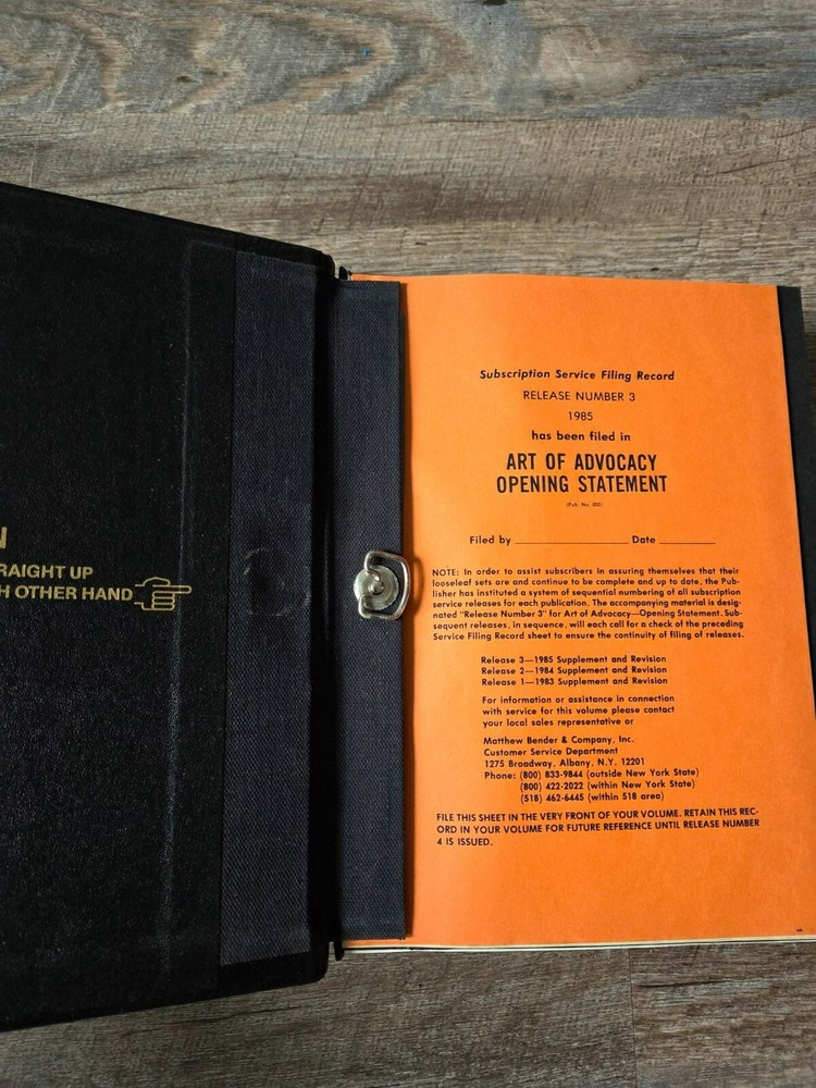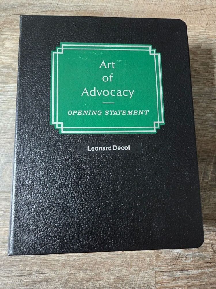 -Art of Advocacy Opening Statement Law Binder by Leonard Decof Mathew Bender Hardcover Great for a law firm, home office, office decorations, staging, schooling/College and personal use. πππSome could have highlighted parts, writing on pages, markings, page creases and bends. All books have normal wear. Please see all pictures and description before purchasing. These are all pre-owned books kept in a smoke free home. Tote: Multi Law Books #3 Lawyer Cases Court Judge Law School Reference Education Features: β’ Books/Law Condition: Pre-Owned Good