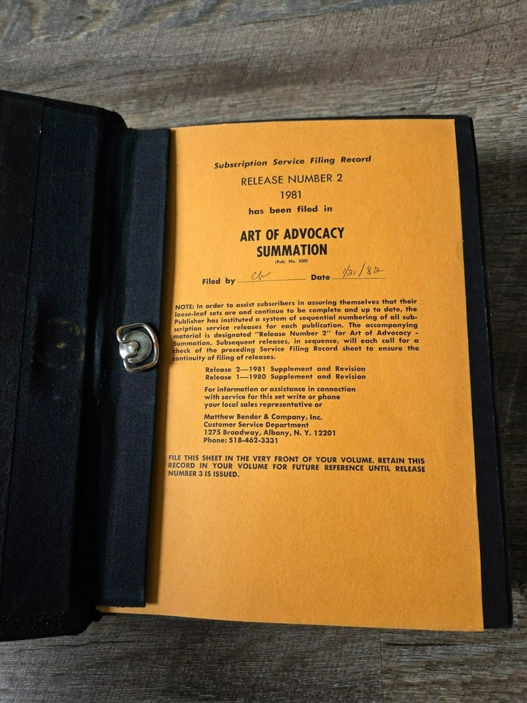 -Art of Advocacy Summation Law Binder by Lawrence J. Smith Mathew Bender Hardcover Great for a law firm, home office, office decorations, staging, schooling/College and personal use. 📘📗📕 Legal Law Books- Some could have highlighted parts, writing on pages, markings, page creases, possible page discoloration due to age and bends. All books have normal wear. Please see all pictures and description before purchasing. These are all pre-owned books kept in a smoke free home. Tote: Multi Law Books #3 Features: • Books/Law Condition: Pre-Owned Good