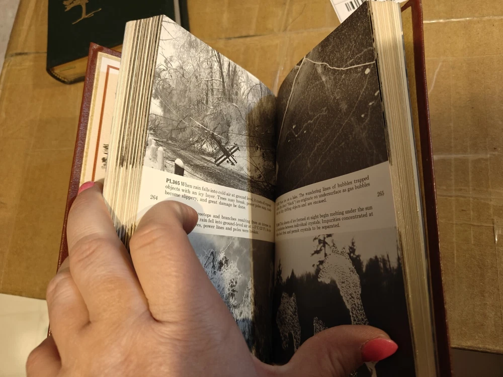 Inside pages are in good condition Leather covers have some wear Has a spot on back view photos...