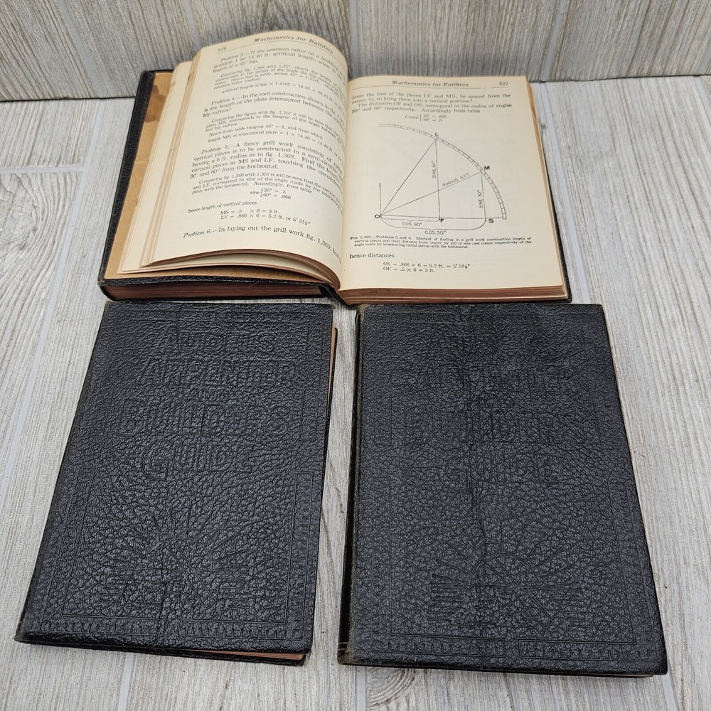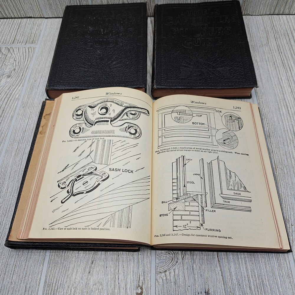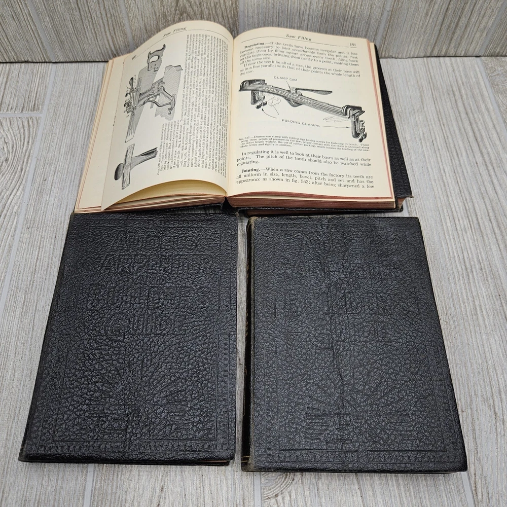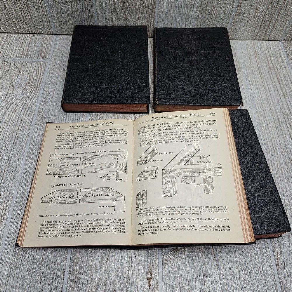 This is a complete set of four volumes of Audels Carpenters and Builders Guide from 1949, written by Frank D. Graham and Thomas J. Emery and published by Theo. Audel and Co. The books are bound in leather and the language used is English. The guides are perfect for reference and are filled with valuable information on carpentry and building.